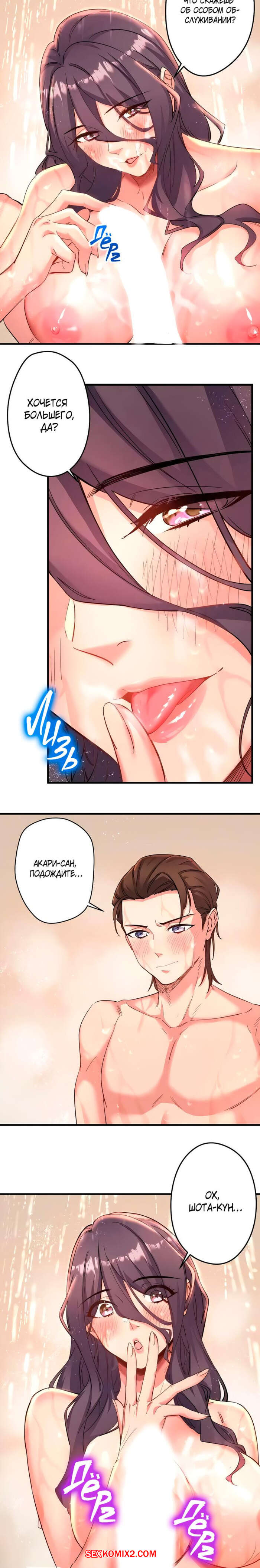 Порно комикс Горячий источник Сакурагецуро. Часть 3. Yozakura Кirishima Горячая брюнетка вышла из душа и решила повеселиться со своим дружком. Она скинула полотенце и отсосала большой хуй парня, после чего дала ему выебать свою пизденку.