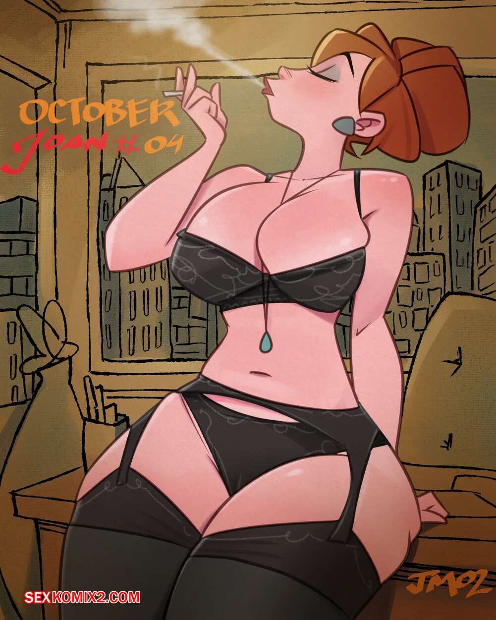 Порно комикс Joan Holloway. Mad Men. Jmoz Comix Горячая милфа с шикарным телом решила взять паузу от работы и повеселиться со своим коллегой. Красотка возбудила парня своими большими сиськами, после чего стала его дразнить все больше.