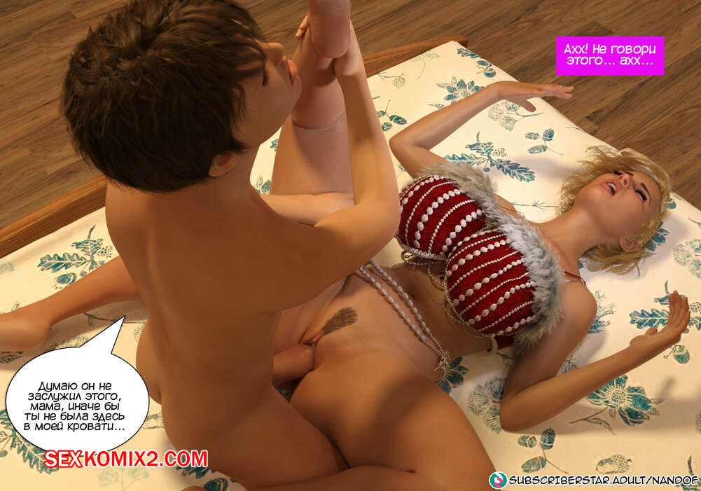 Порно комикс Рождественский выпуск. Christmas Special. NandoF Горячая блондинка милфа надела сексуальный наряд, желая повеселиться с мужем в канун Рождества. Он уснул во время просмотра игры, а Анна решила выпить и пошла позвать своего сына составить ей компанию. Парень застал свою сексуальную маму спящей в кровати и не смог сдержаться, чтобы не трахнуть ее.