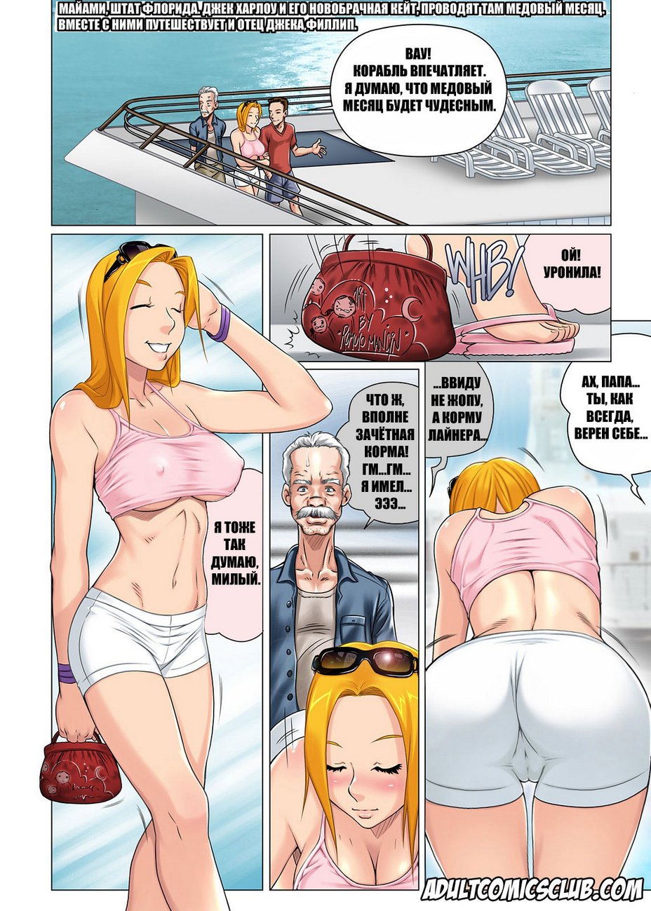 Порно комикс «Похотливый свекр. Часть 2». В этом комиксе вы увидите, как молодая девушка со своим мужем и его отцом поехали на курорт Майями. Они погуляли по городу и пошли загорать на пляж, молодой муженек пошёл купаться и его сексуальная жена осталась наедине со своим тестем. Мужчина предложил красотке намазать её спину кремом от загара, и на не была против. Втирая крем в нежное тело девушки он позволил себе шалость и намазал задницу, в один момент его пальцы даже коснулись анальной дырочки. Красотка сделала вид, что не заметила этого, но ей очень понравилось.