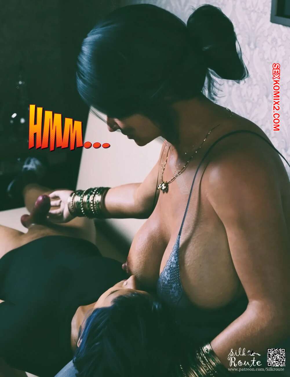 Порно комикс Мама и я. Часть 11.1. Mom and Me. Silk Route, Ira Raman Несмотря на то, что у парня появилась девушка, он продолжает свои отношения с мамочкой. Красотка раздевается и возбуждает сына, после чего начинает дрочить его член, желая потрахаться.
