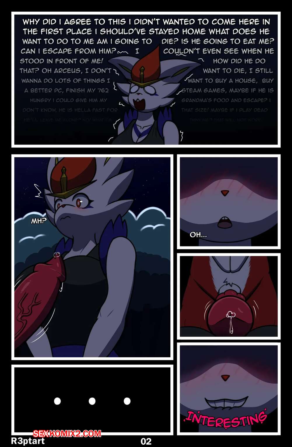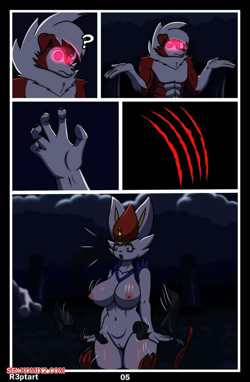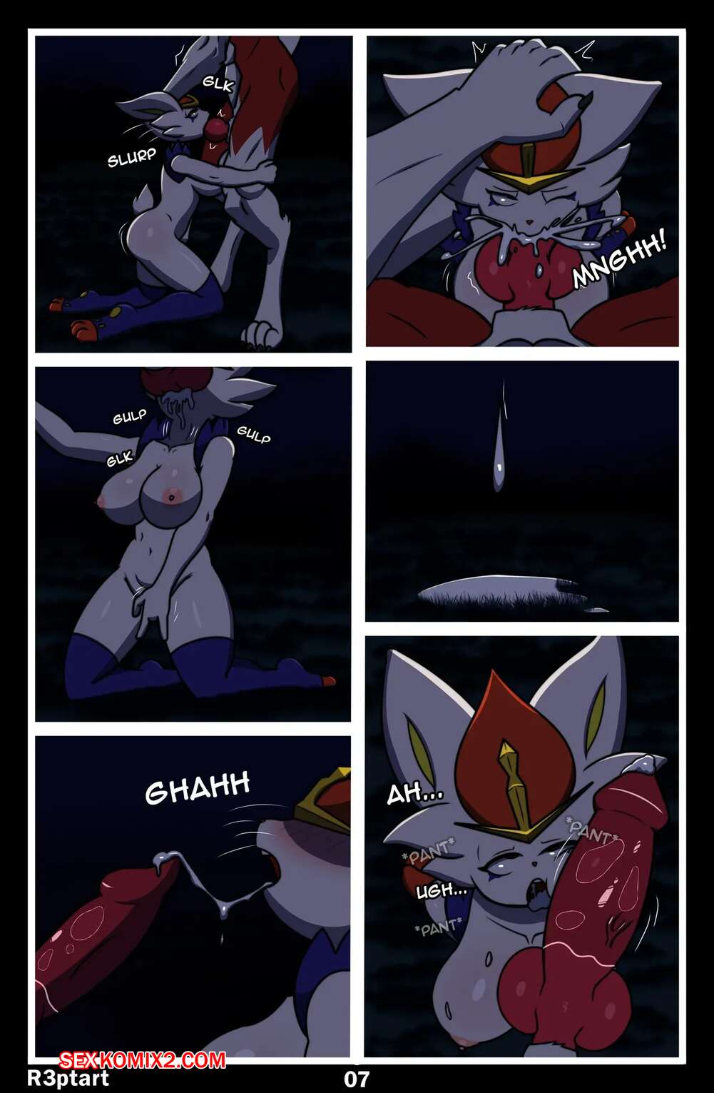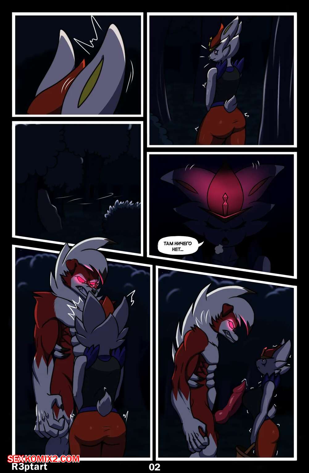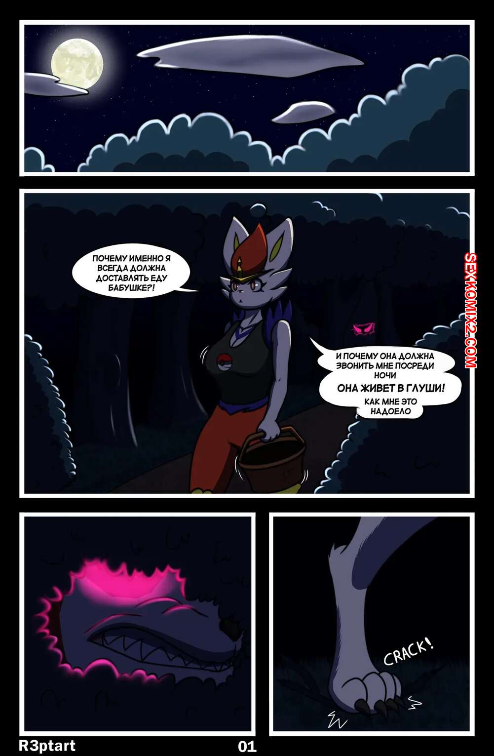 Порно комикс Pokemon. Полуночные гонки. Midnight Riding. R3ptArt. Девушка фурри отправилась ночью в лес, где на нее напал монстр. Он раздел красотку и поставил ее на колени, после чего дал отсосать свой большой хуй, получая огромное удовольствие.