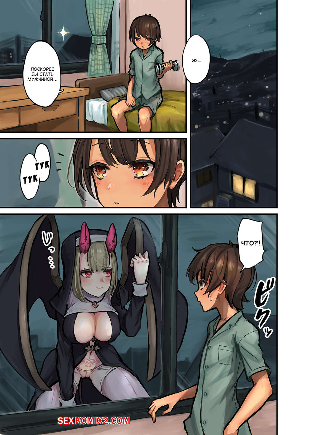 Порно комикс Sister Succubus. Tonight Is Succubus Nun. Sokumaru Горячая монашка суккуб была очень возбуждена и решила повеселиться с молодым парнем. Она стала к нему приставать, желая возбудить и заняться страстной еблей.