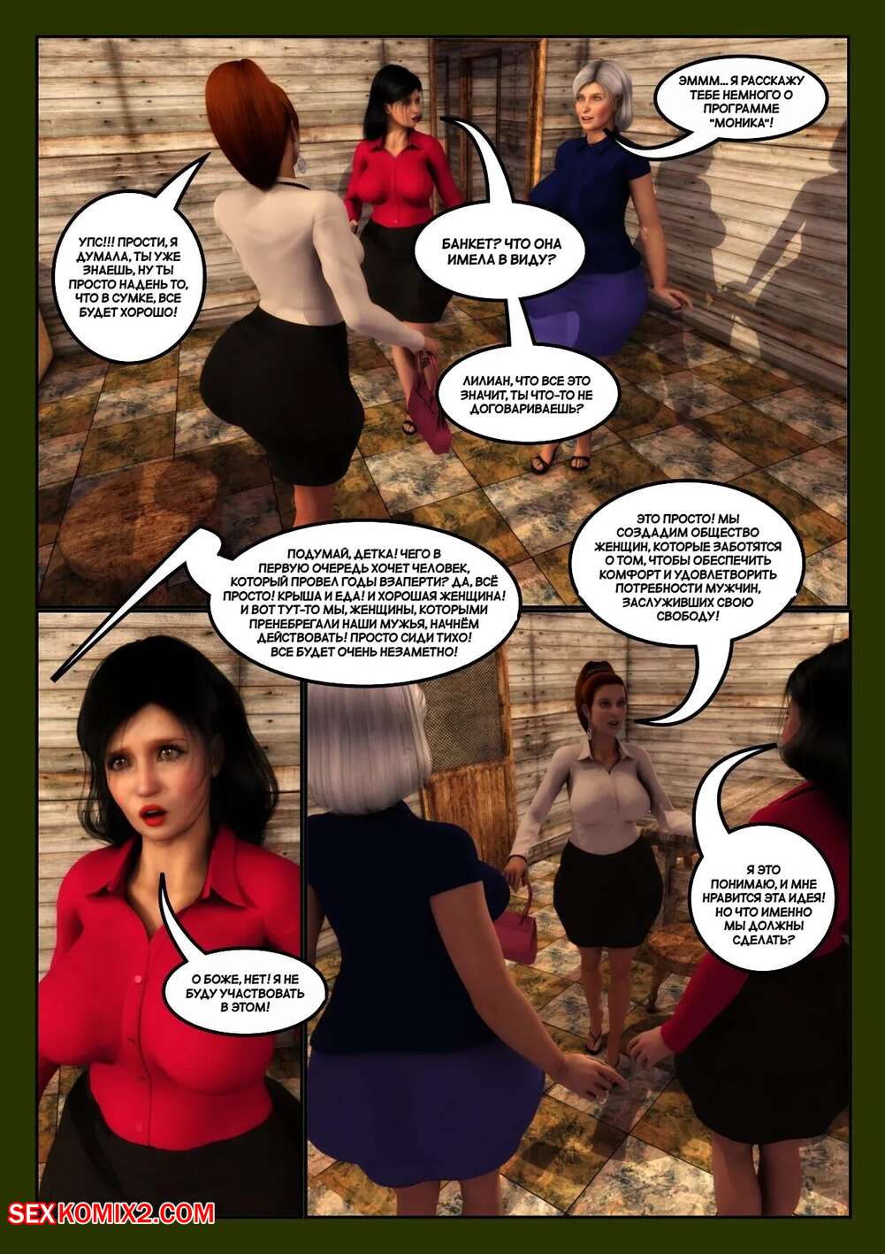 Порно комикс Жена проповедника. Часть 2. The Preachers Wife. Moiarte3D Горячие милфы устроили встречу с темнокожими парнями. Красотки разделись и дали своим дружкам вылизать свои пизденки, после чего раздвинули ножки и дали себя выебать.
