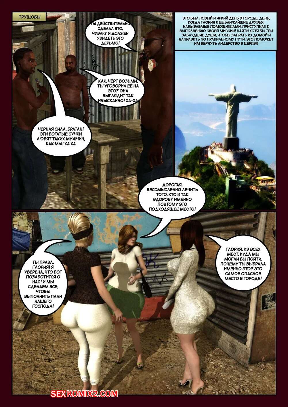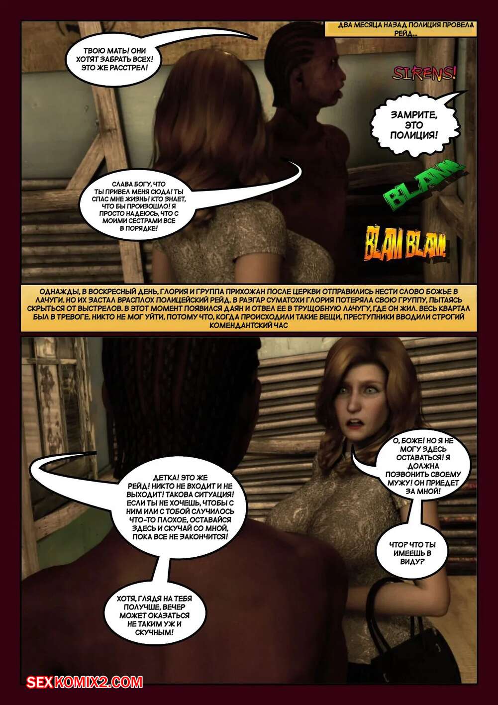 Порно комикс Жена проповедника. Часть 4. The Preachers Wife. Moiarte3D Горячая милфа отправилась в бедный район города, желая соблазнить темнокожего бездомного. Красотка раздвинула ножки и дала первому встречному себя хорошенько выебать.