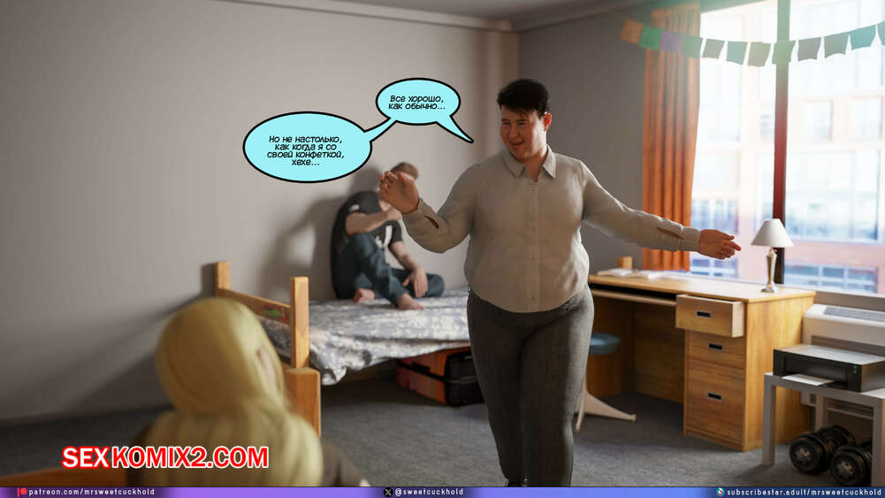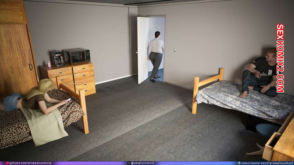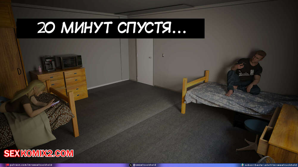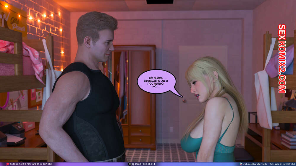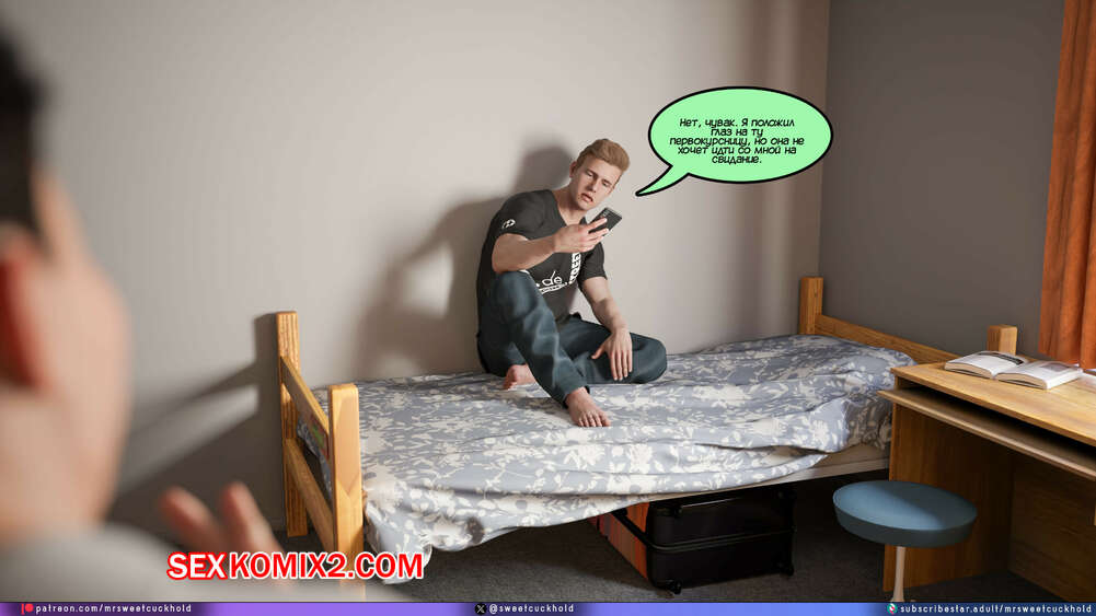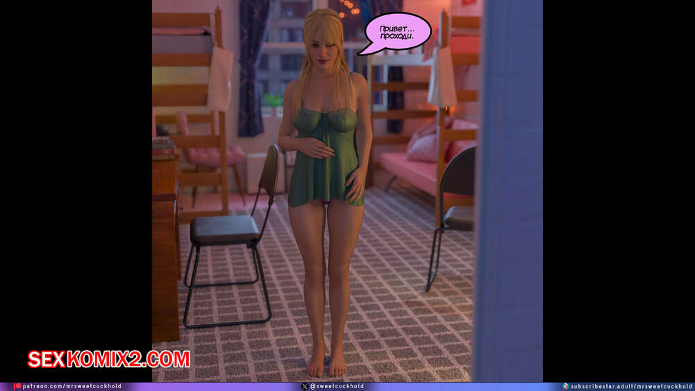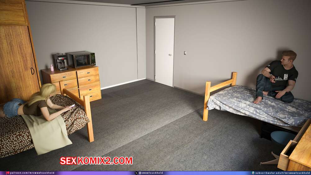 Порно комикс Намного больше, чем у моего парня. Дни колледжа. Часть 4. MrSweetCuckhold Майк продолжает соблазнять девушку своего соседа по комнате. Пейдж больше не может сдерживаться, поэтому пригласила Майка к себе в комнату, чтобы он лишил ее девственности.