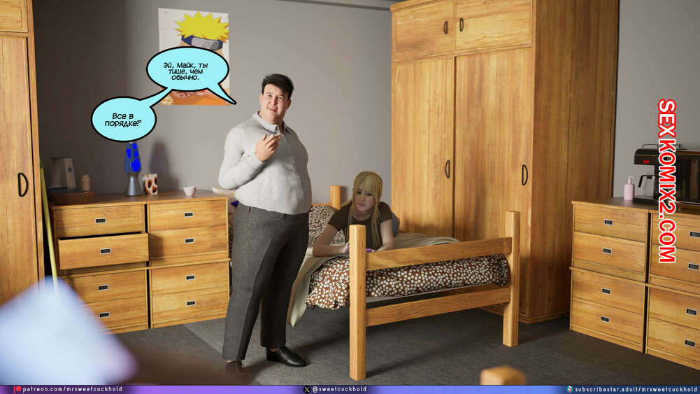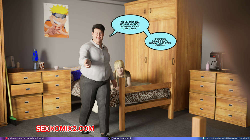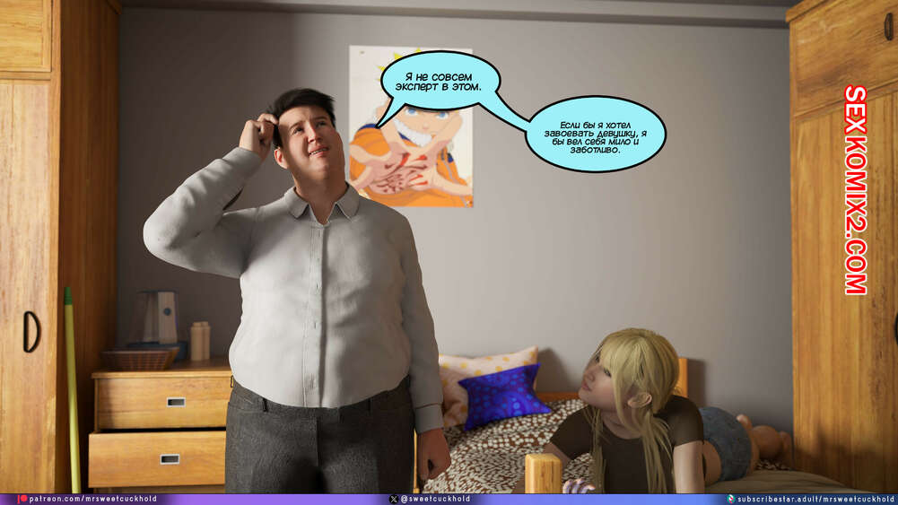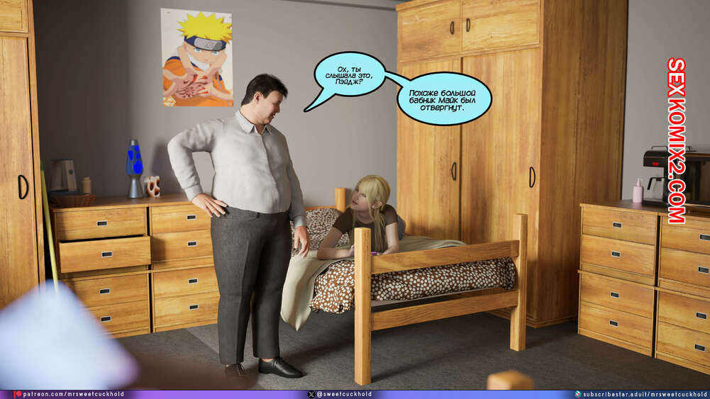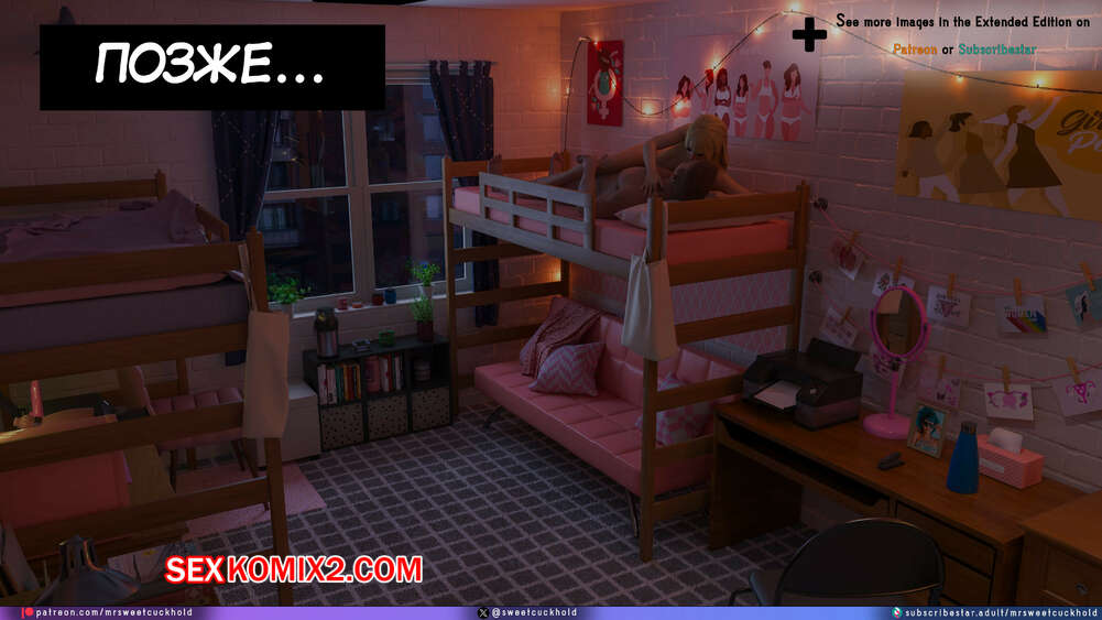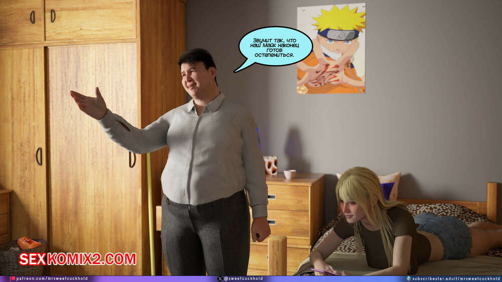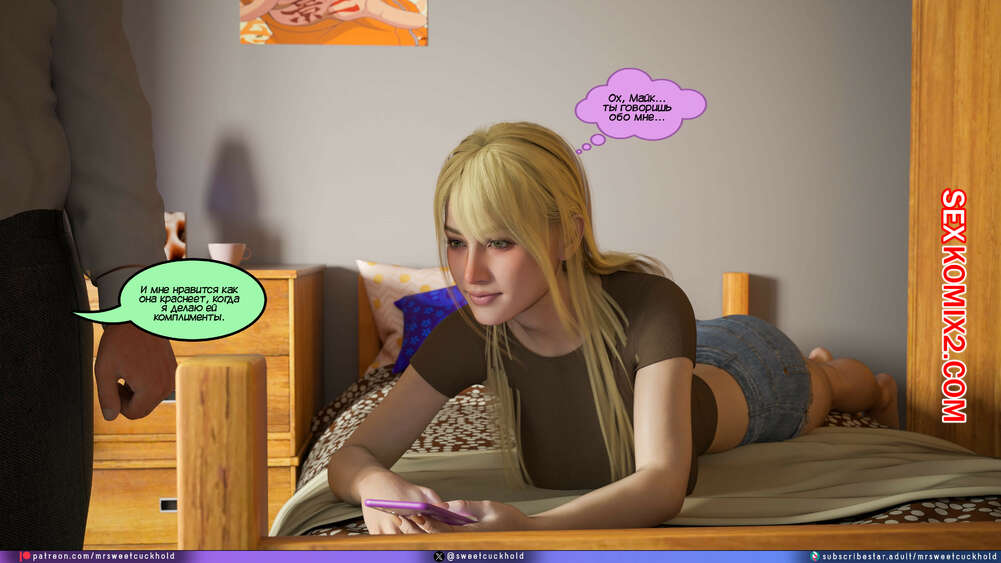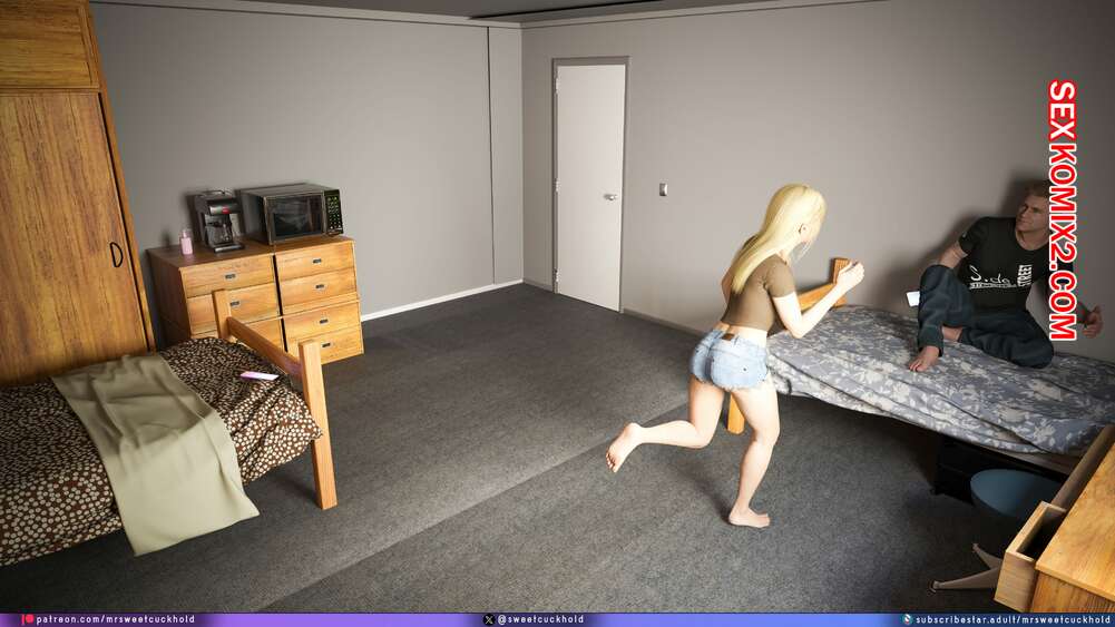 Порно комикс Намного больше, чем у моего парня. Дни колледжа. Часть 4. MrSweetCuckhold Майк продолжает соблазнять девушку своего соседа по комнате. Пейдж больше не может сдерживаться, поэтому пригласила Майка к себе в комнату, чтобы он лишил ее девственности.