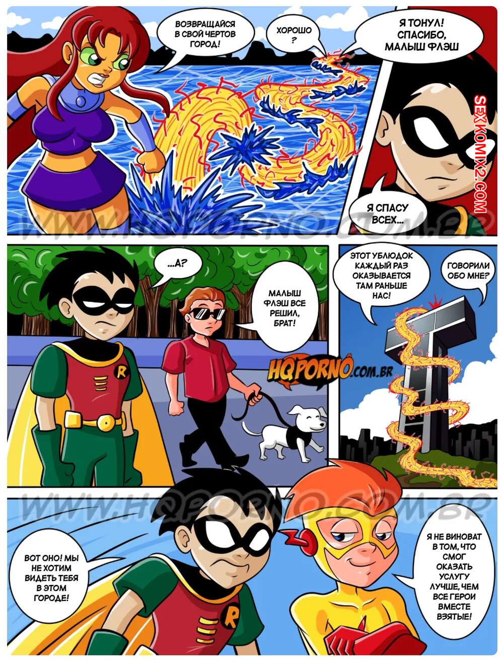 Порно комикс Юные титаны. Часть 6. Jovens Titas. HQporno Во время отдыха на пляже горячая красотка Рейвен решила повеселиться с Кид Флэшем. Красотка разделась и возбудила парня шикарным телом, после чего дала ему выебать свою пизденку.