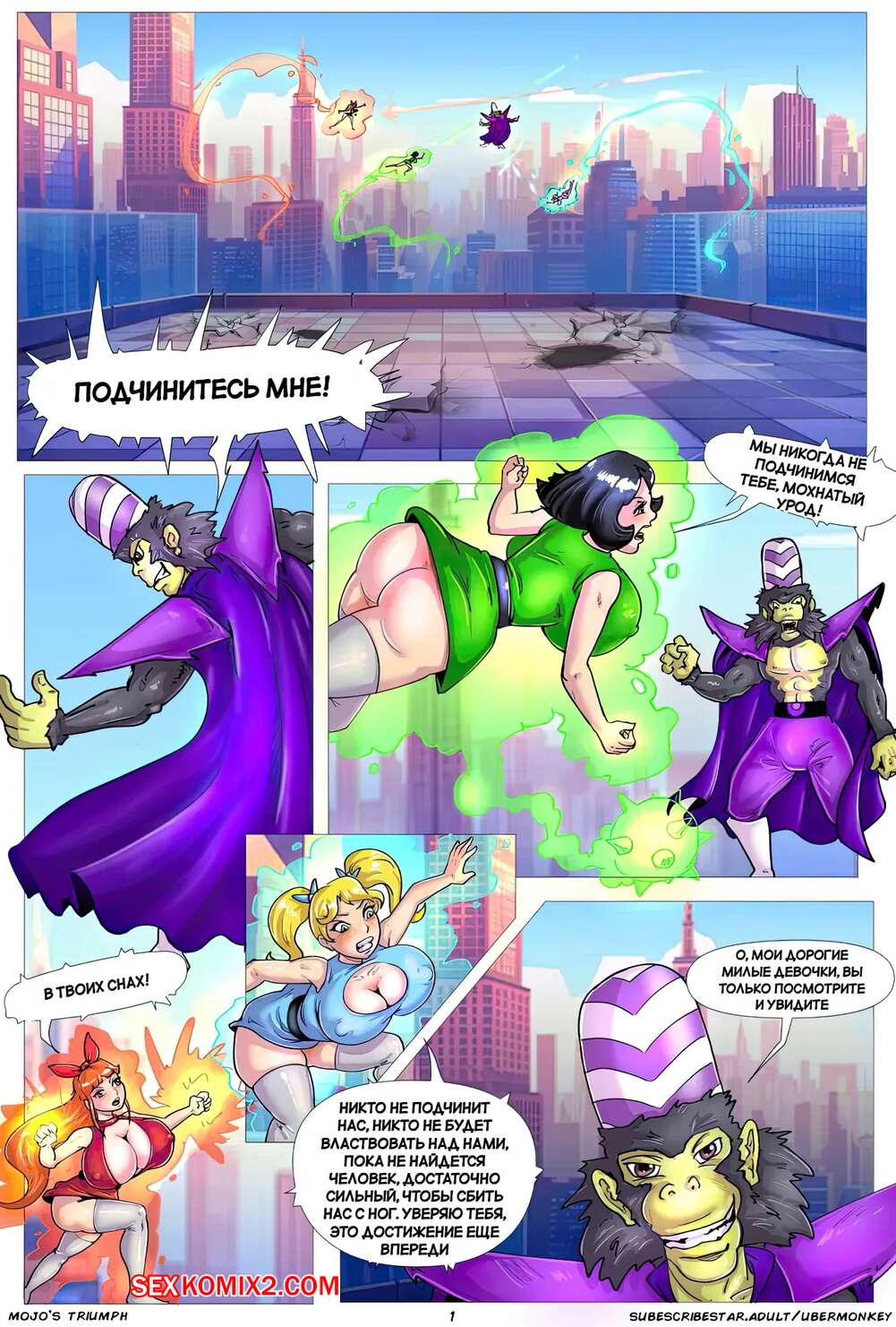 Порно комикс Powerpuff Girls. Триумф Моджо. Mojos Triumph. UberMonkey