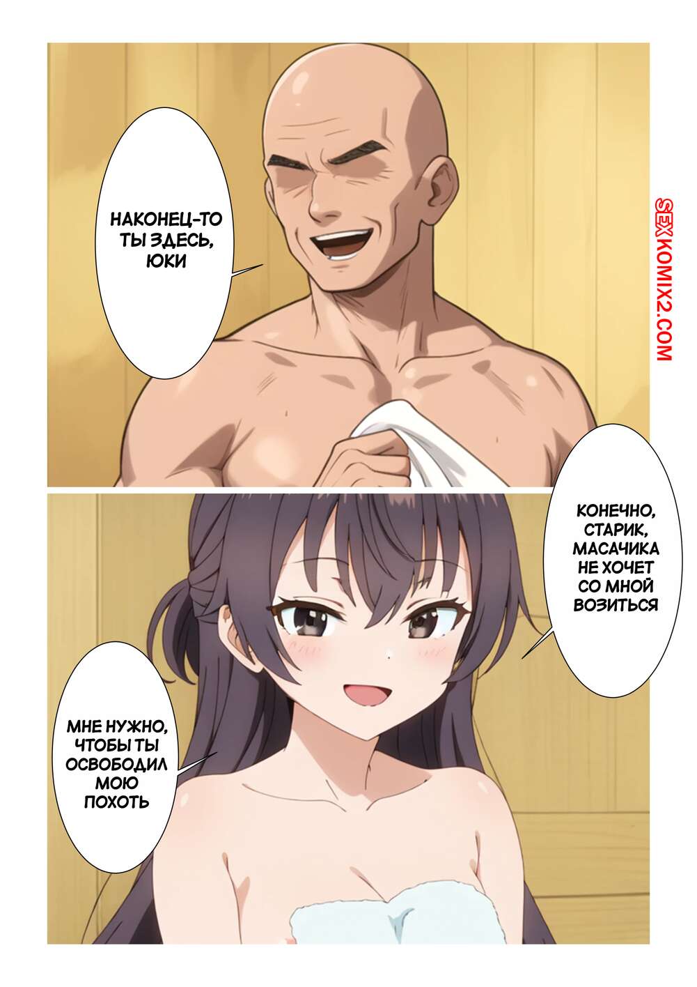 Порно комикс Юки и странный старик. Yuki and the odd old man. Kahoo Горячая брюнетка Юки осталась наедине со стариком в бане и решила с ним повеселиться. Девушка встала на колени и отсосала хуй мужика, после чего дала ему себя выебать.