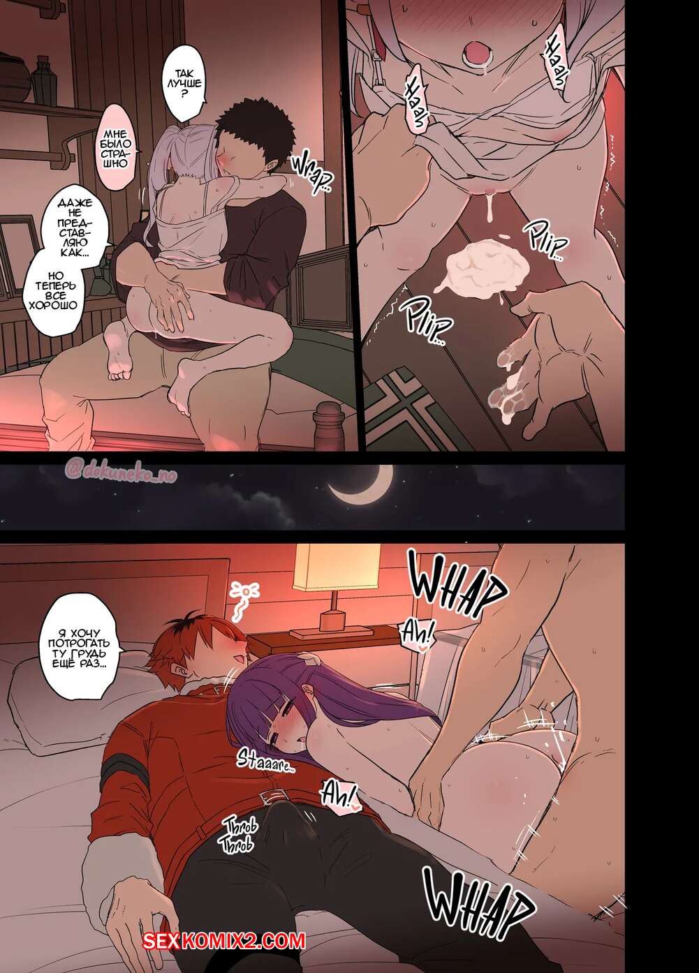 Порно комикс У Фрирен была та ещё ночка. Dokuneko Noil Горячая блондинка Фрирен напилась и два ее дружка решили воспользоваться случаем. Они раздели девушку и дали ей отсосать свои большие хуи, после чего хорошенько ее выебали.