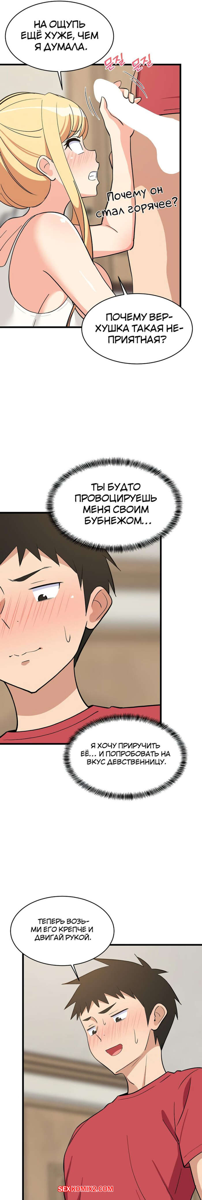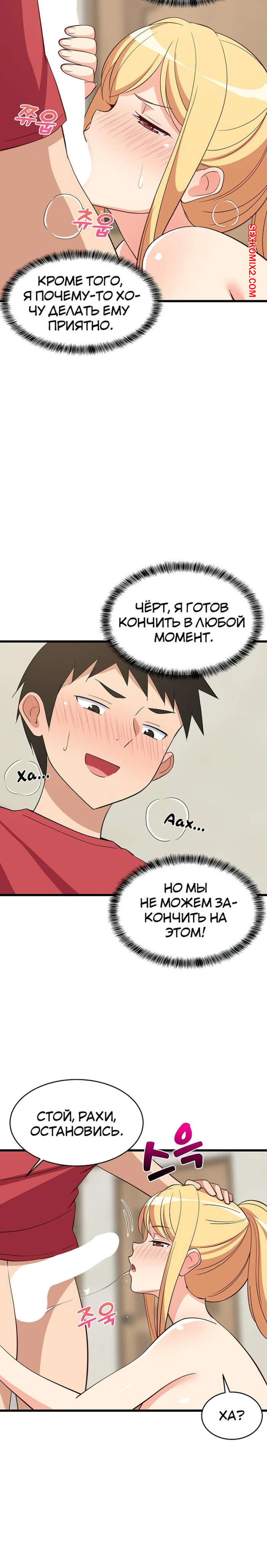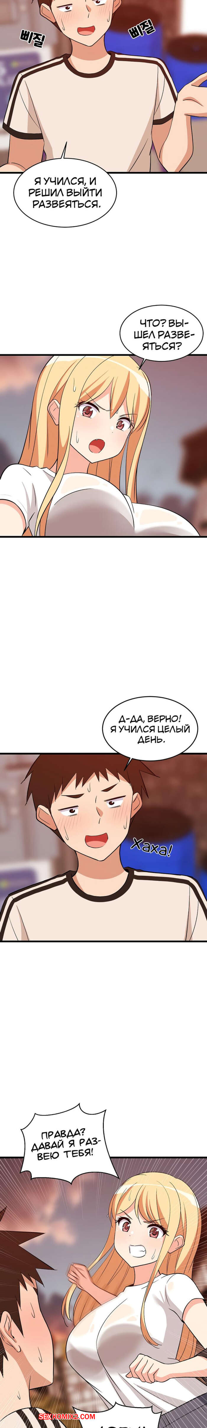 Порно комикс Увеличение сексуальности. Часть 16 и 17 и 18. seongjeogeogsang Горячая блондинка увидела стояк своего дружка и сильно возбудилась. Красотка встала на колени и отсосала большой хуй парня, после чего он предложил ей заняться сексом.
