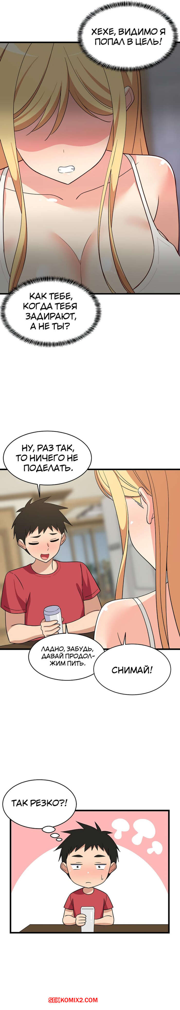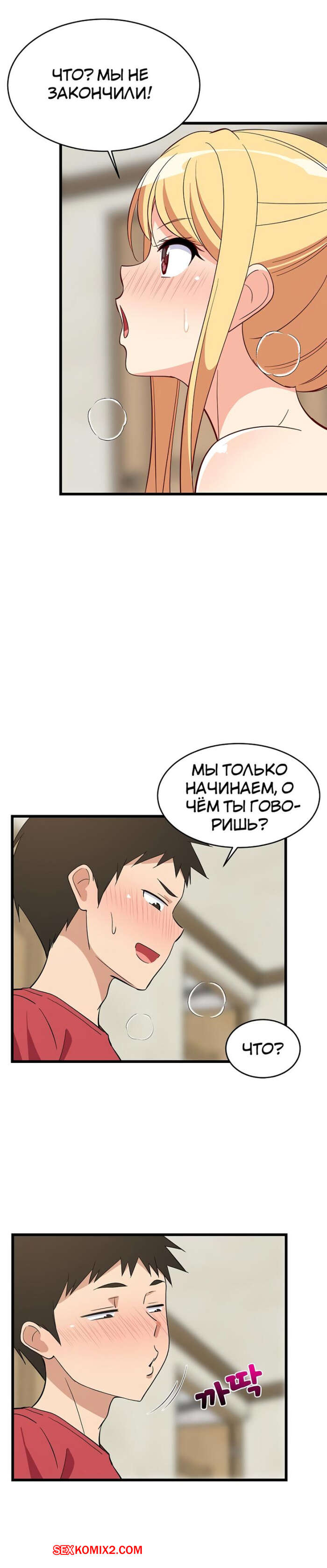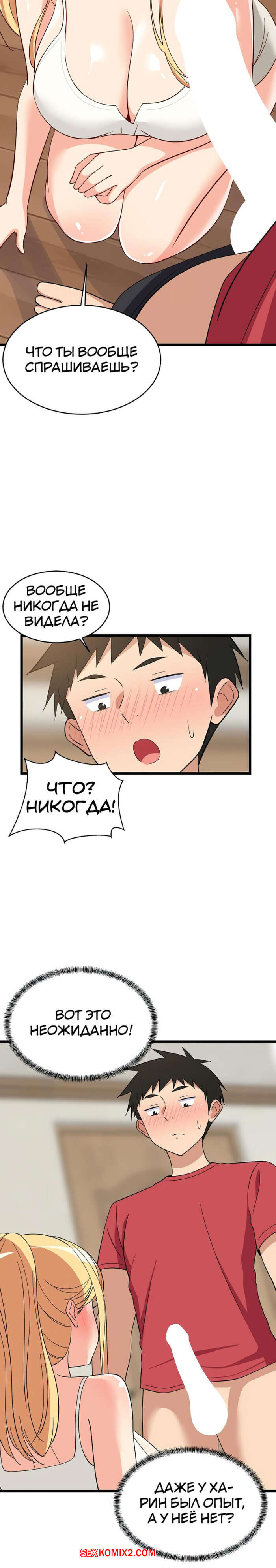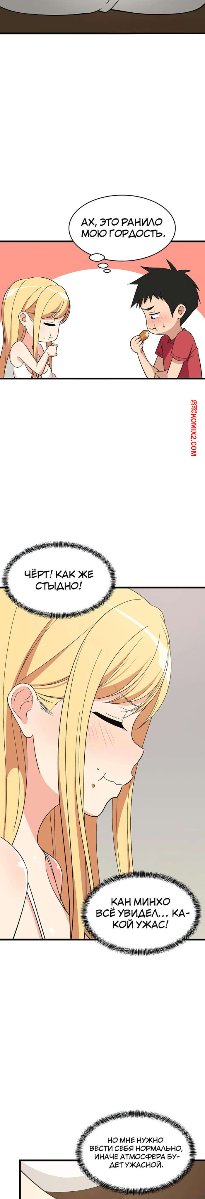 Порно комикс Увеличение сексуальности. Часть 16 и 17 и 18. seongjeogeogsang Горячая блондинка увидела стояк своего дружка и сильно возбудилась. Красотка встала на колени и отсосала большой хуй парня, после чего он предложил ей заняться сексом.