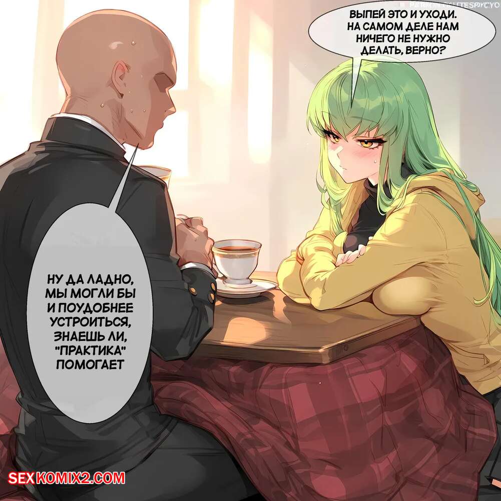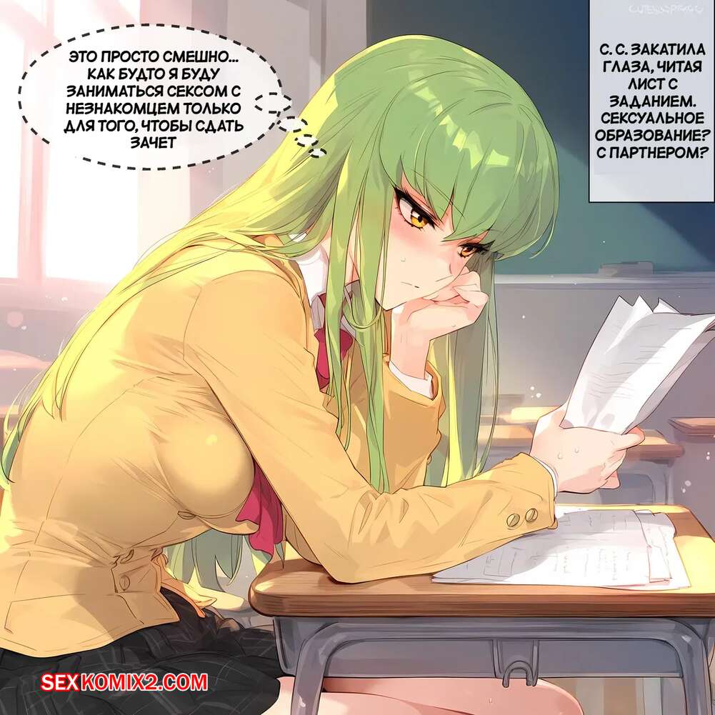 Порно комикс С.С и код Гесс. C.C x Code Geass. Ecchi AI Горячая красотка была очень возбуждена и решила повеселиться со своим дружком. Она разделась и отсосала большой хуй парня, после чего дала ему выебать свою пизденку.
