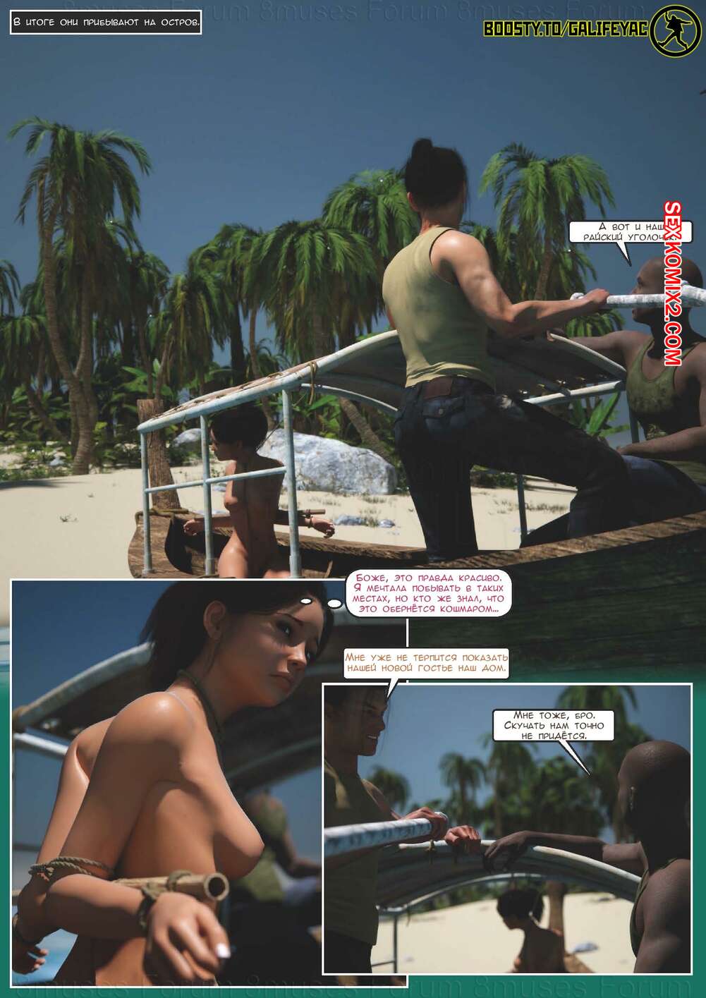 Порно комикс Подарок судьбы. Часть 3. The Bounty. Strutter79 Три друга продолжают наслаждаться шикарным телом брюнеточки, которую они взяли с собой кататься на лодке. Парни вышли на остров и стали трахать красотку по очереди.