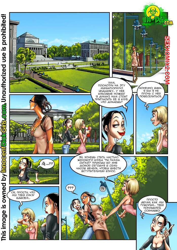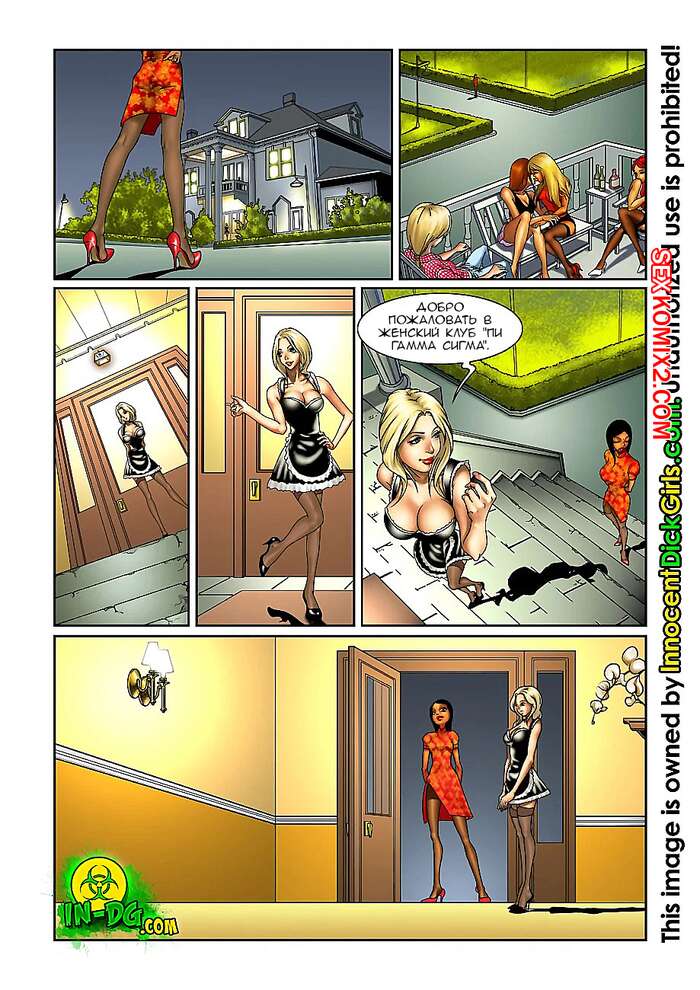 Порно комикс Женский клуб. Innocent Dick Girls Горячие красотки собрались в женском клубе и решили повеселиться. Они разделись и стали ласкать друг дружку, после чего занялись страстной групповой еблей, получив невероятное удовольствие.