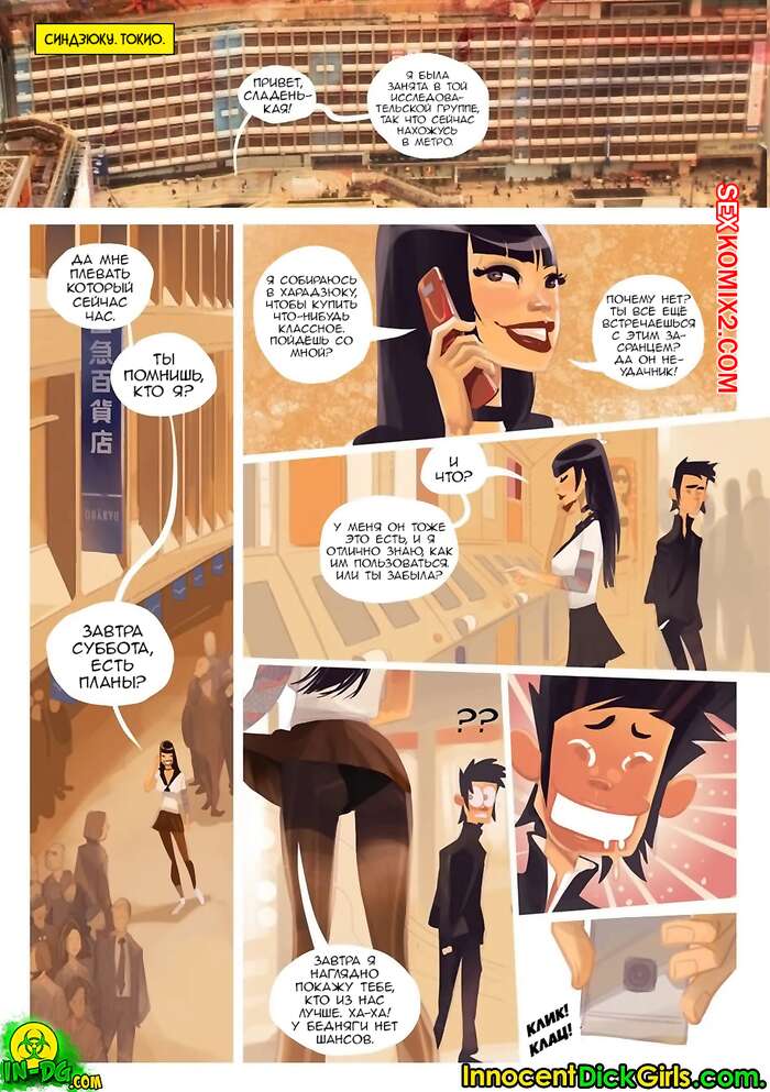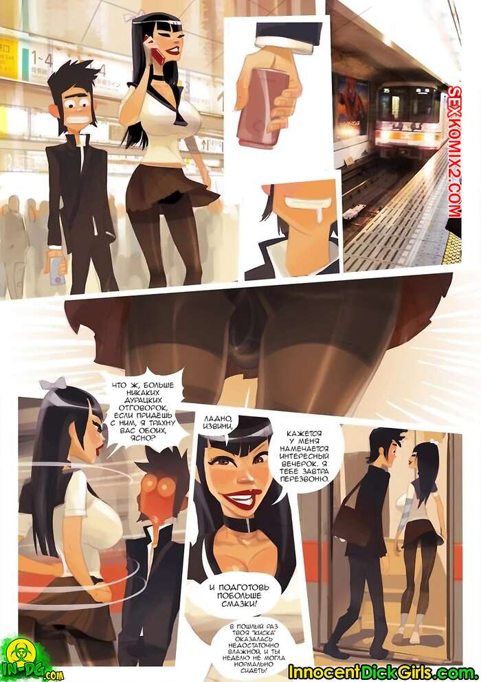 Порно комикс Съемки в Синдзюку. Натсуми. Innocent Dick Girls Горячая брюнетка с большим членом ехала в вагоне метро и решила повеселиться с сексуальной девушкой и ее коллегой по работе. Они на пару с парнем выебали красотку, доставив ей удовольствие.
