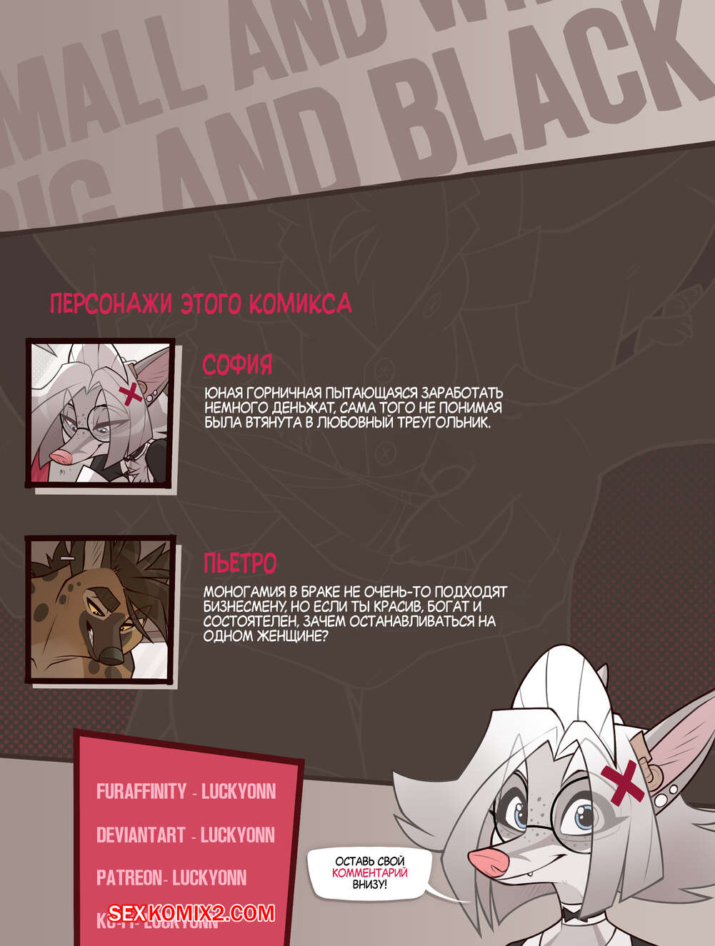 Порно комикс Белая малышка чёрный здоровяк. LuckyOnn Горячая блондинка фурри решила подзаработать денег и устроилась работать горничной к брачной паре. Когда девушка осталась наедине с хозяином дома, он ее соблазнил и как следует выебал красотку.