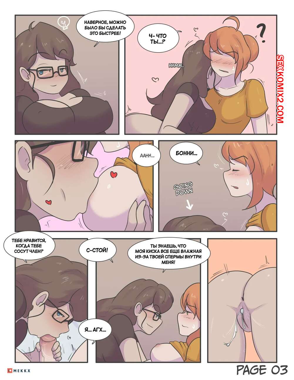 Порно комикс Бонни и Тедди. Bonnie x Teddi. Mekkx Рыжая красотка с членом была очень возбуждена и решила повеселиться со своей подругой. Она раздела брюнеточку и хорошенько ее выебала, от чего обе девушки получили удовольствие.