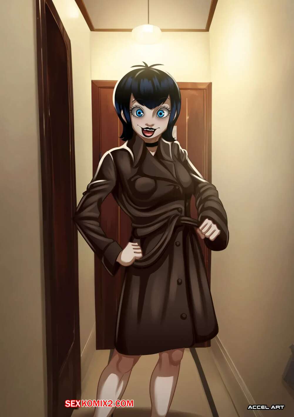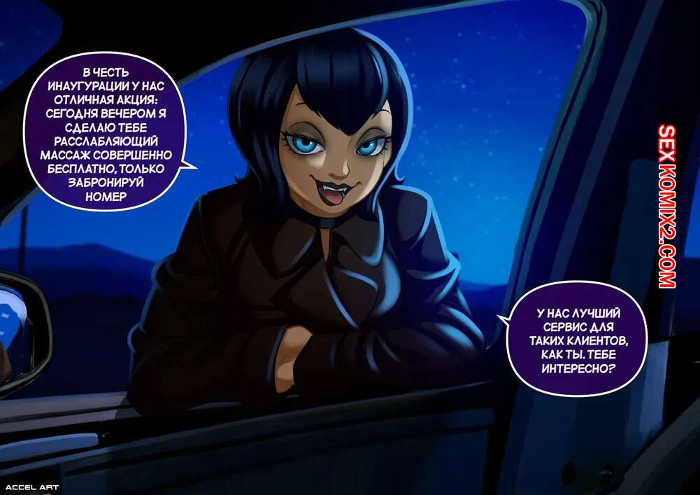 Порно комикс Отель Трансильвания. Часть 2. Motel Transylvanya. Accel Art Горячая брюнетка Мавис была очень возбуждена и решила повеселиться с темнокожим парнем. Она разделась и возбудила парня шикарным телом, после чего дала ему себя выебать.