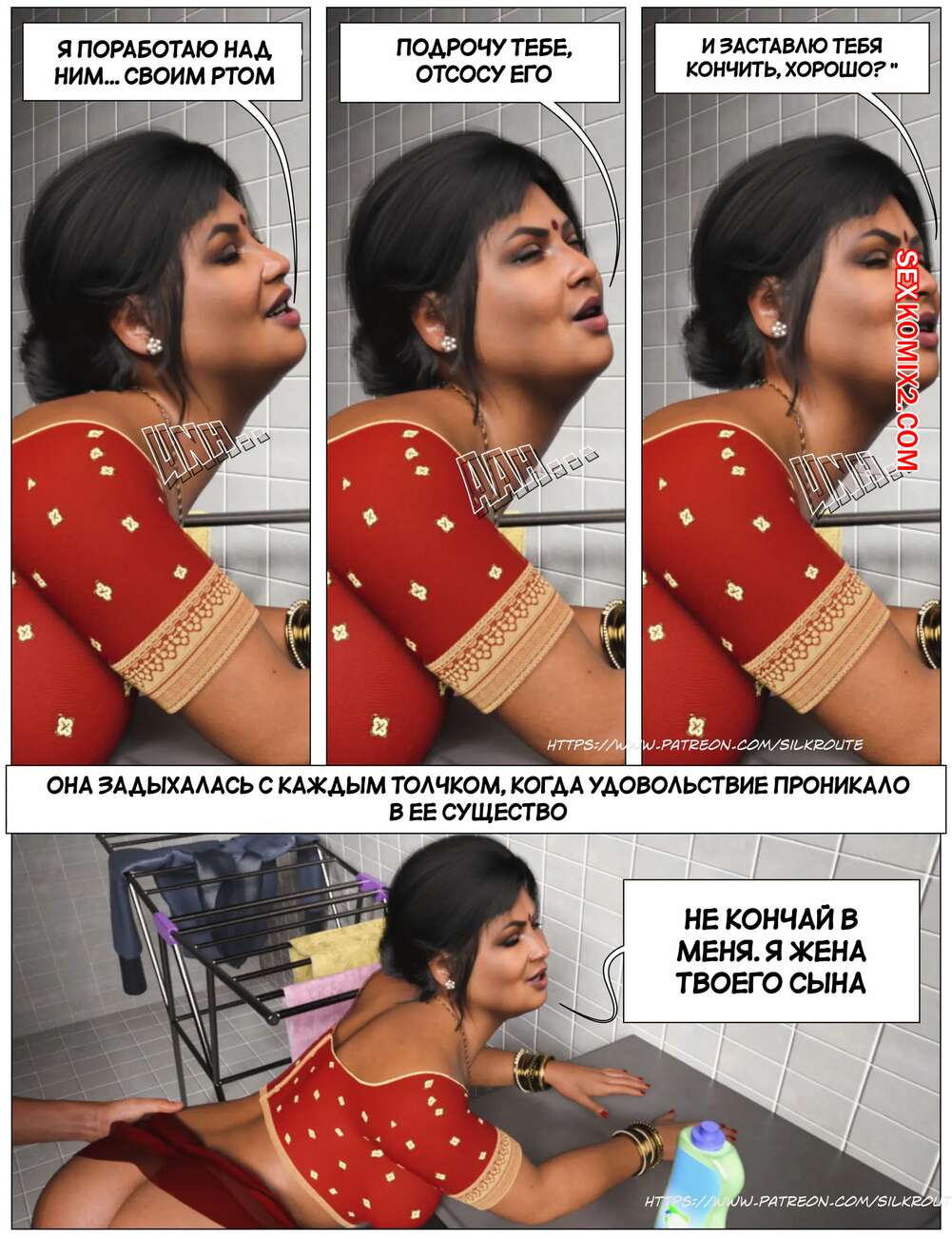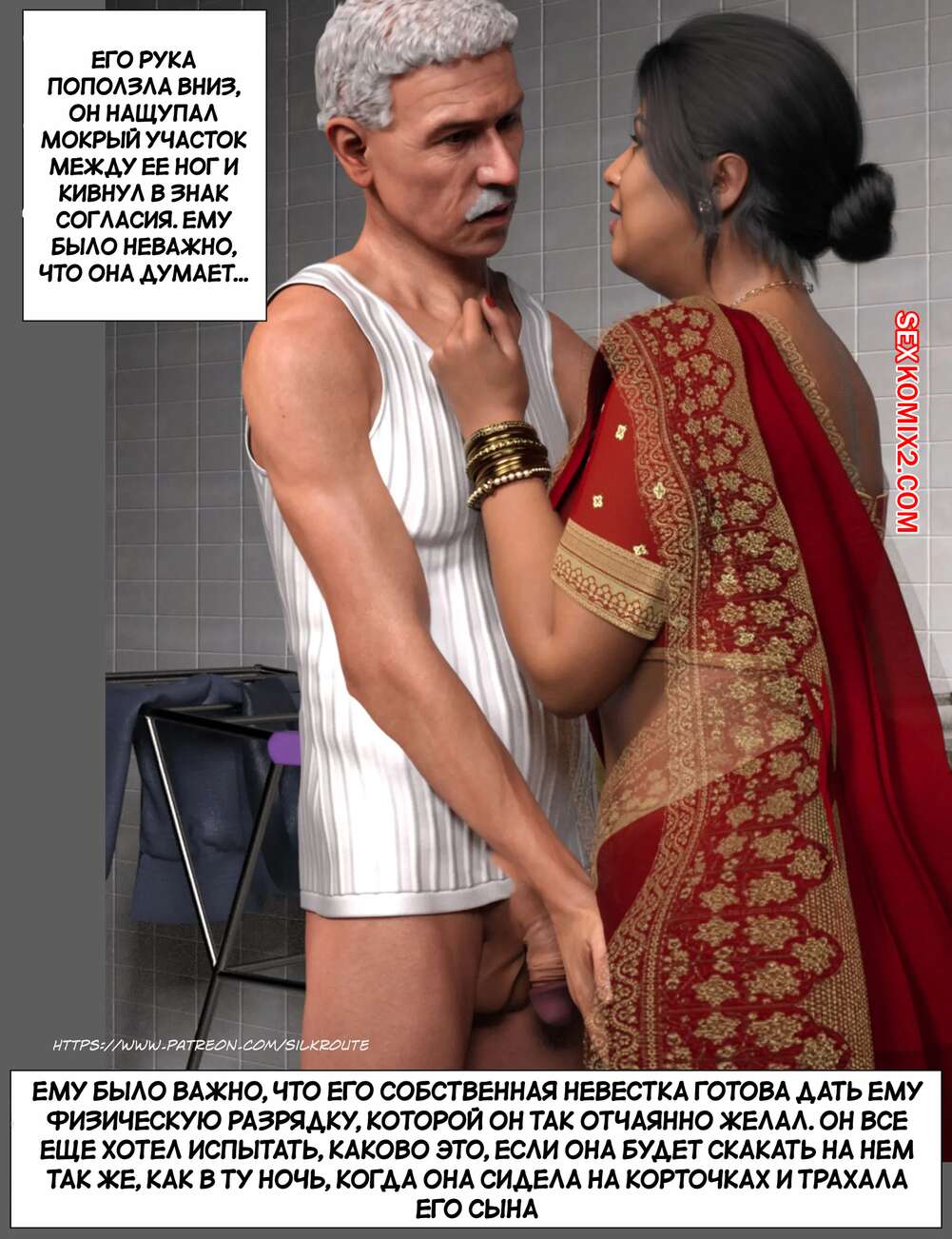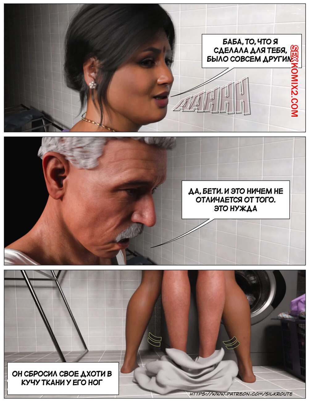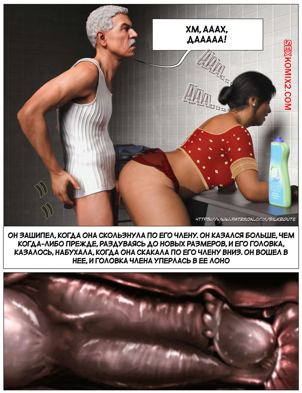 Порно комикс Моменты Масала. Часть 3. Masala Moments Горячая милфа занималась делами по дому, но старик был возбужден и решил повеселиться с красоткой. Он снял с нее трусики, после чего хорошенько выебал ее пизденку.
