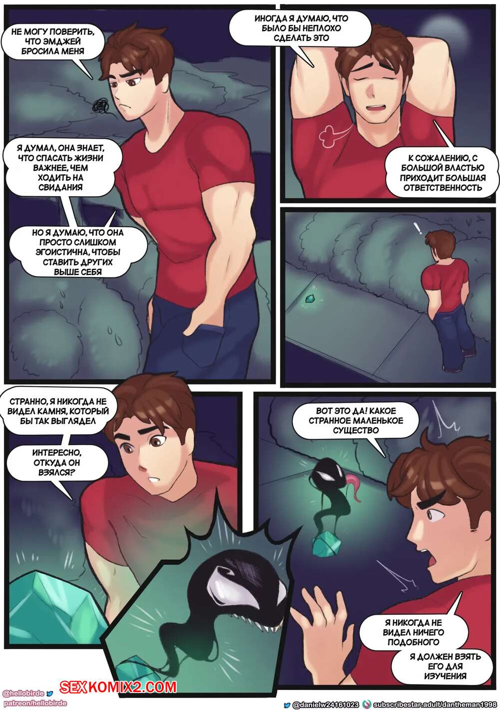 Порно комикс Spider Man. Сексуальный симбиоз Питера. Peters Sexual Symbiosis. Hellobirde Горячие красотки без ума от большого члена Питера. Девушки раздеваются и сосут большой хуй своего дружка, после чего раздвигают ножки и дают ему себя выебать.