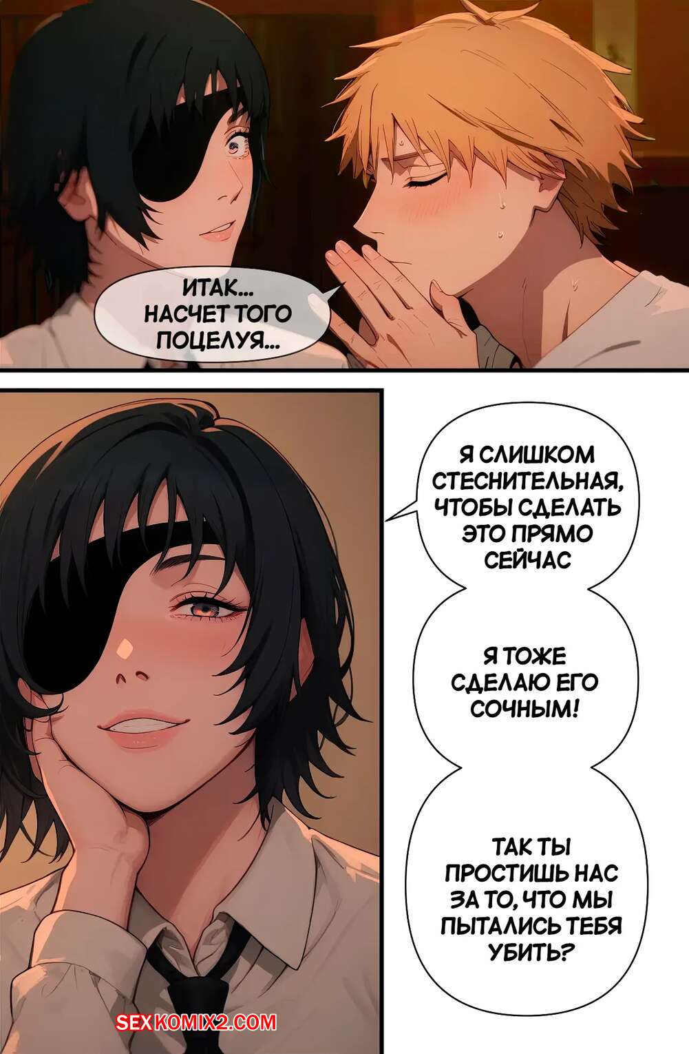 Порно комикс Chainsaw Man. Переписанные встречи. Часть 2. Rewritten Encounters. Scarlet Meow Горячая брюнетка была очень возбуждена и решила повеселиться со своим дружком. Она разделась и возбудила парня шикарным телом, после чего дала ему себя хорошенько выебать.