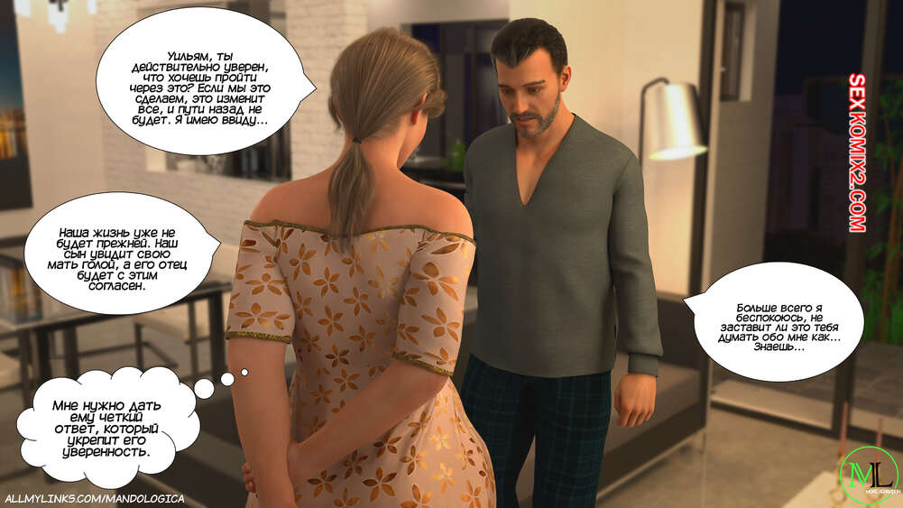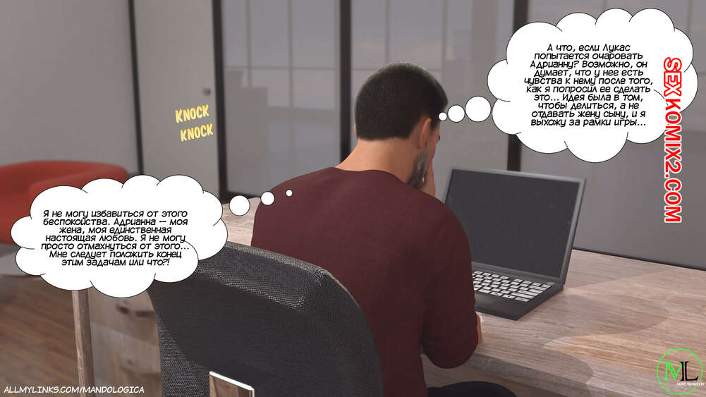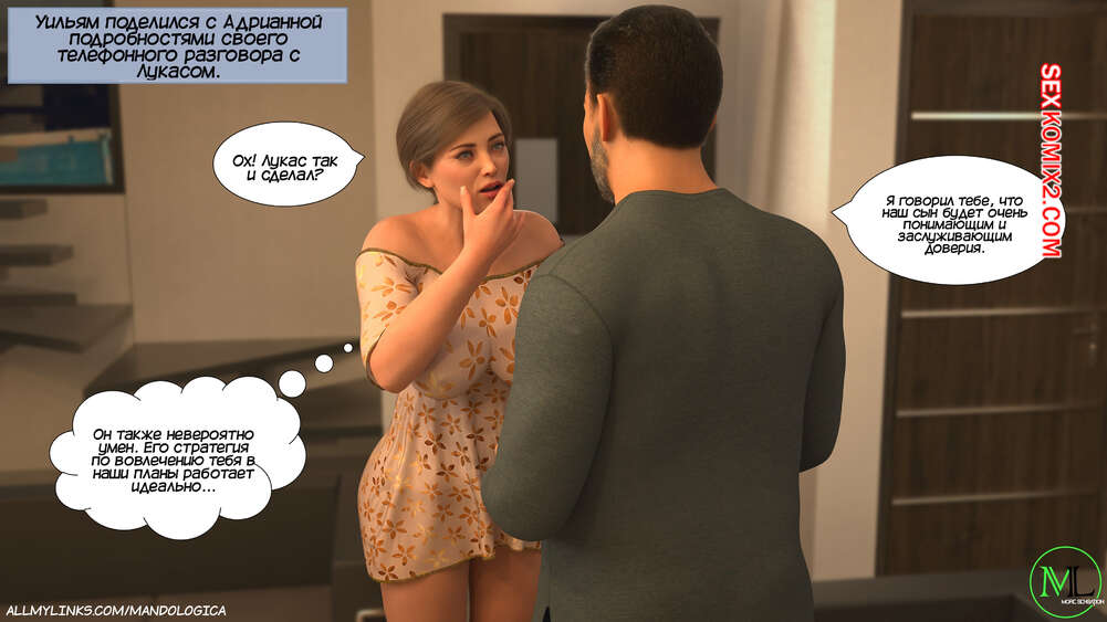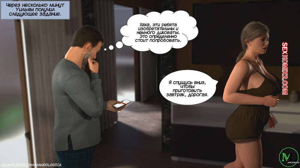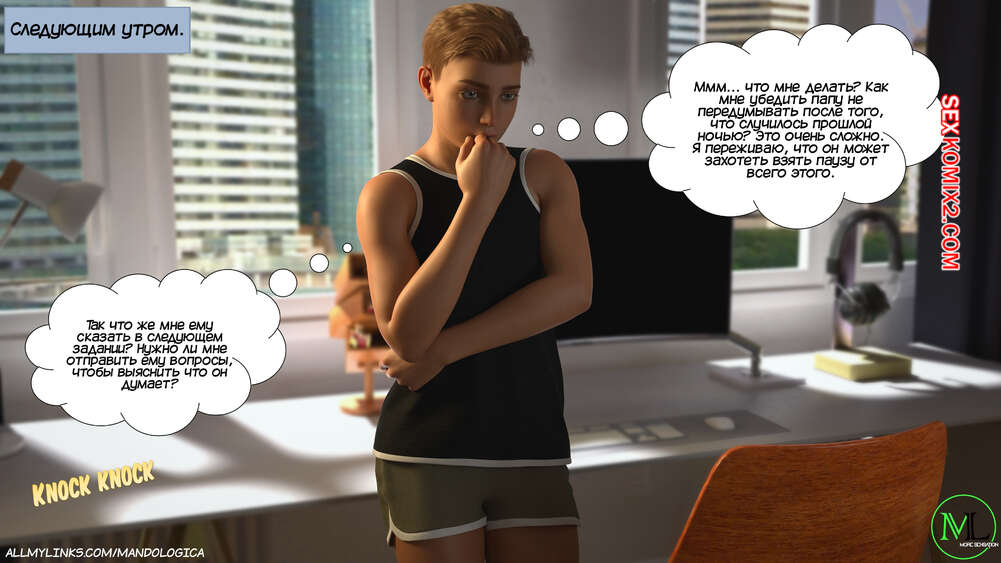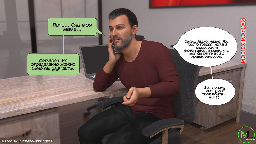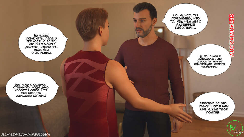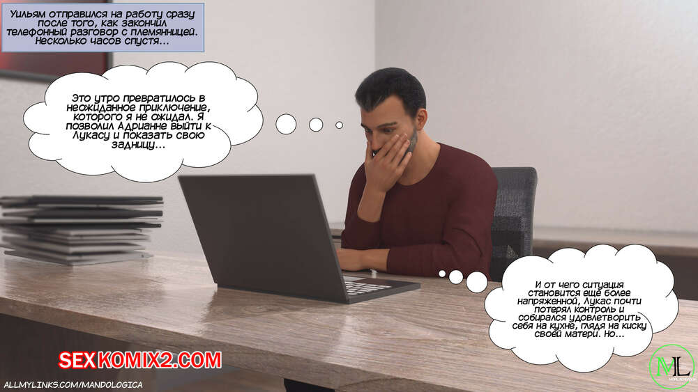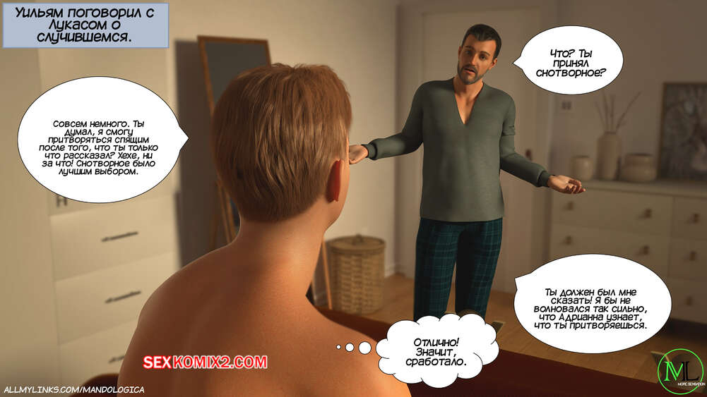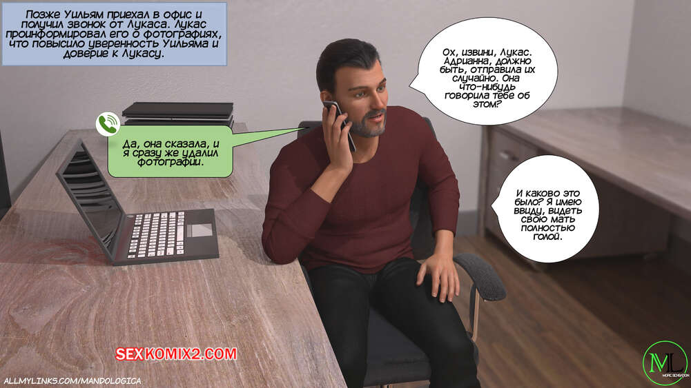 Порно комикс Разрушение границ. Часть 10. Breaking Boundaries. MandoLogica Уильям размышлял на работе о произошедшем утром. Его не устраивает его положение в процессе заданий от организации. Лукас понимает это, поэтому отправился в офис к отцу, чтобы успокоить его.