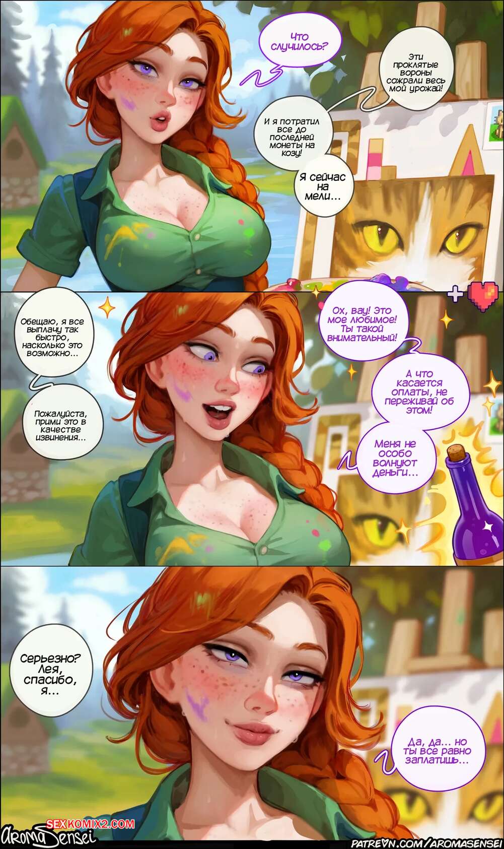 Порно комикс Лея. Leah. Aromasensei Рыжая красотка Лея рисовала картину для своего соседа. У парня не было денег расплатиться, поэтому красотка дала ему себя выебать в пизду и задницу, получив от этого удовольствие. Парень расплатился по полной.
