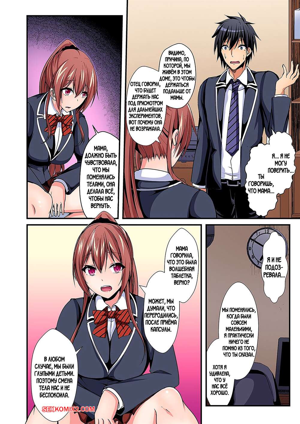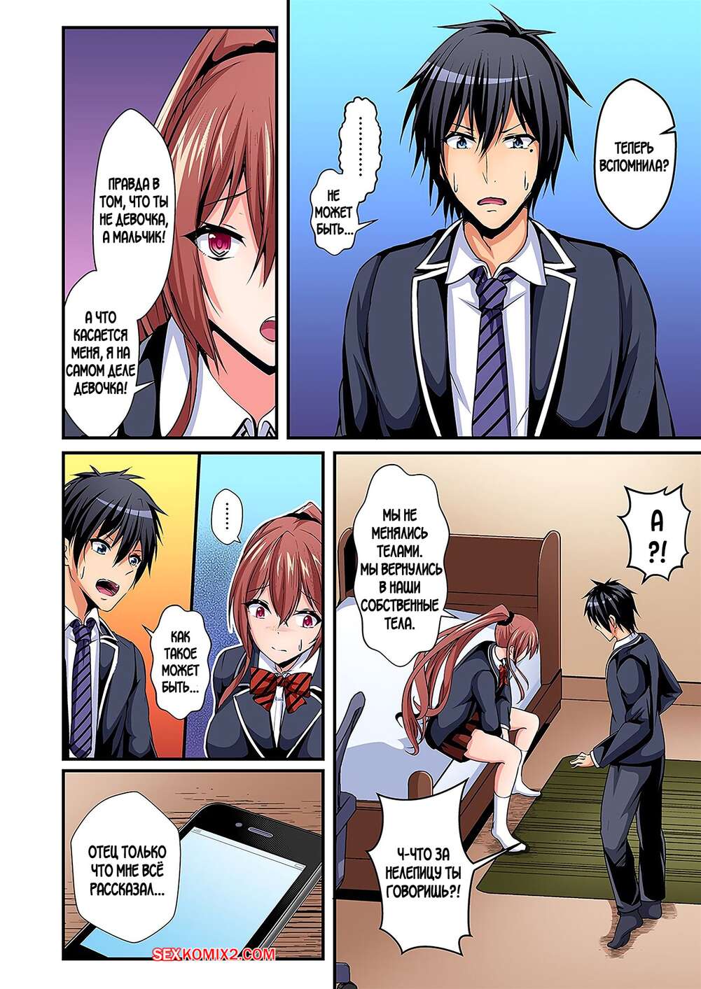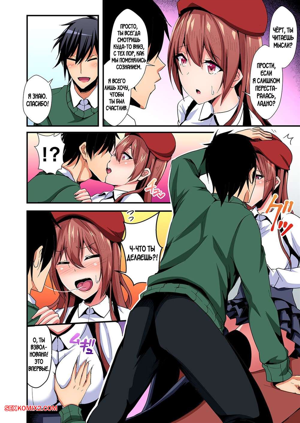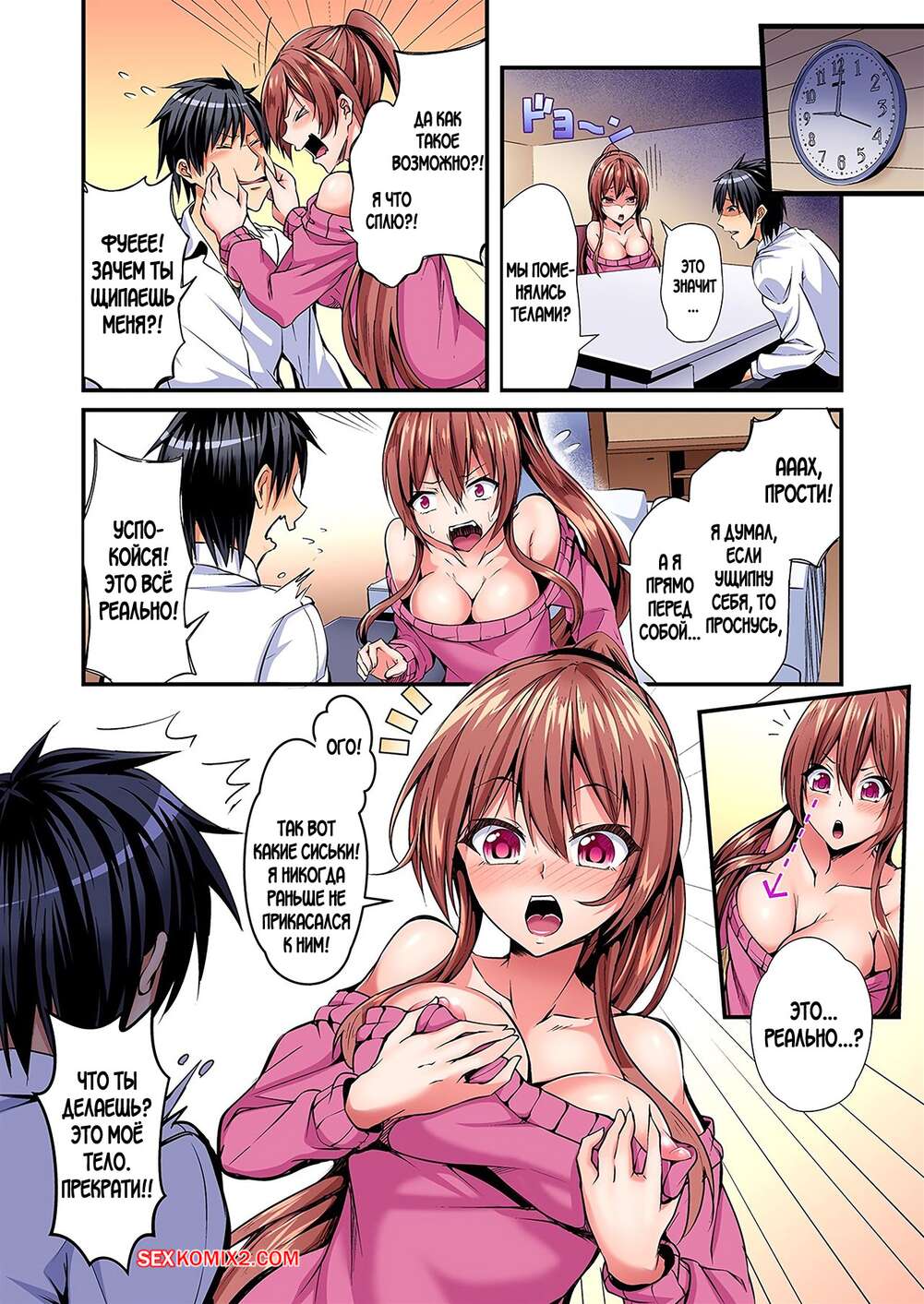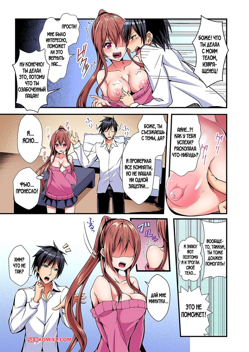 Порно комикс Switch bodies and have noisy sex. Часть с 1 по 6. Suishin Tenra Парень с девушкой поменялись телами и испытывают невероятное возбуждение друг к другу. Красотка раздевается и раздвигает ножки перед своим дружком, чтобы он хорошенько ее выебал.