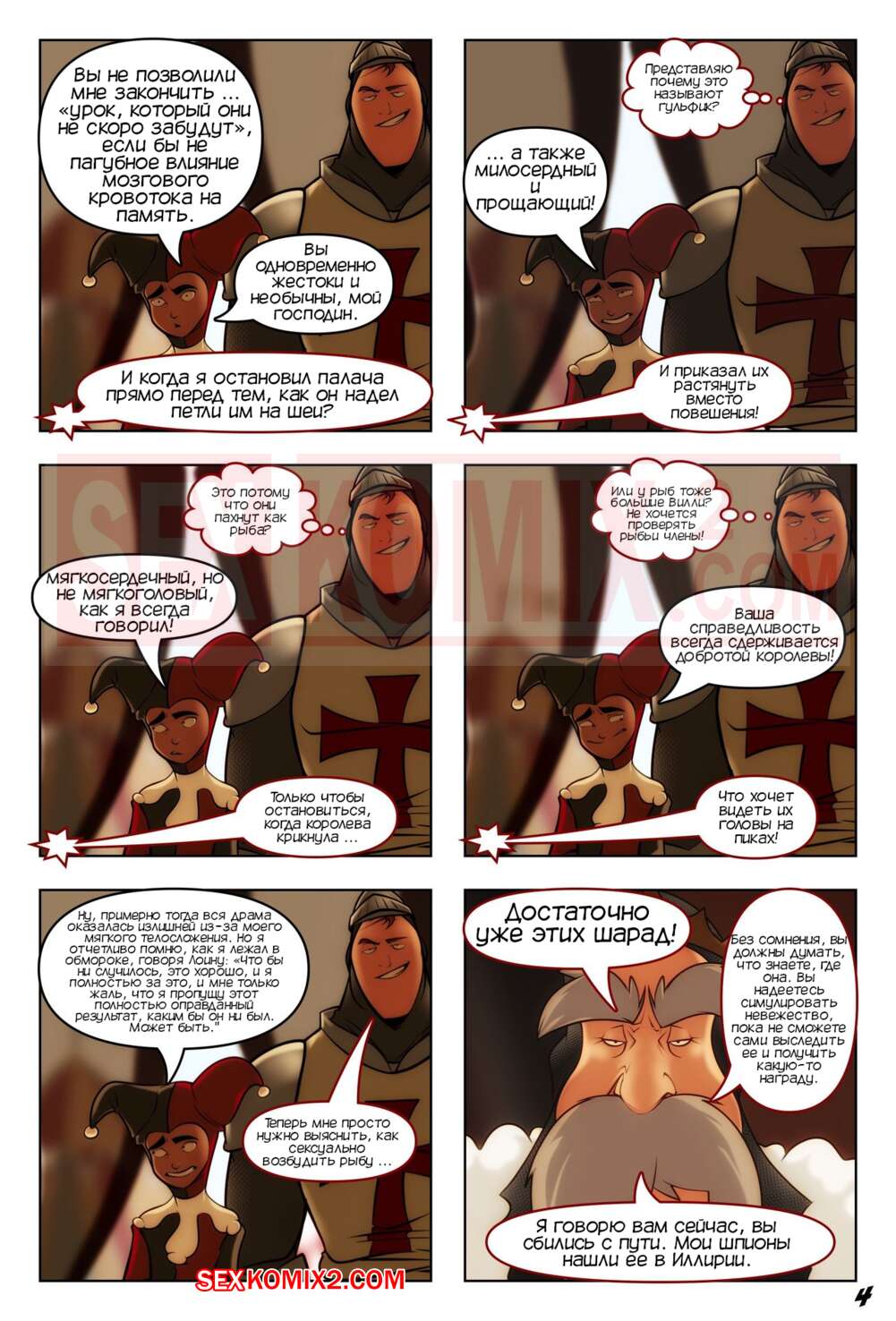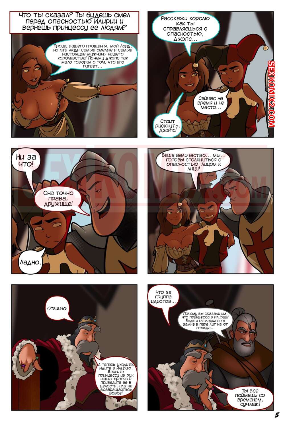 Порно комикс Дерзкий. Часть 4. Japes. Доблестному рыцарю и его помощнику всё-таки удалось найти принцессу и после всех её блядок, девушку привели домой. Принцесса сопротивлялась, она хоте продолжение ебли с монстрами и злодеями.