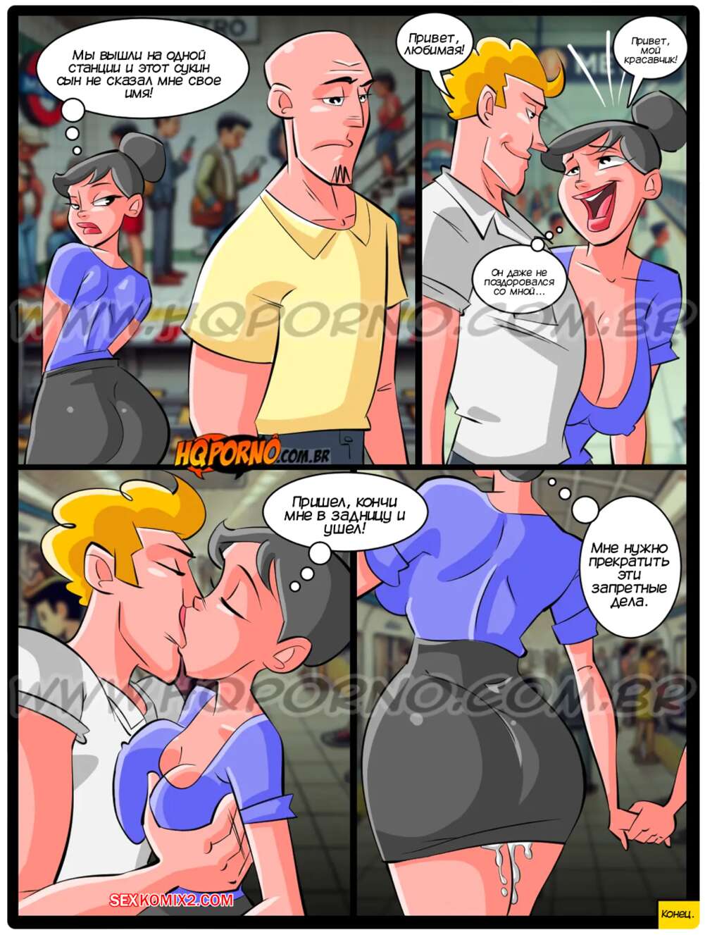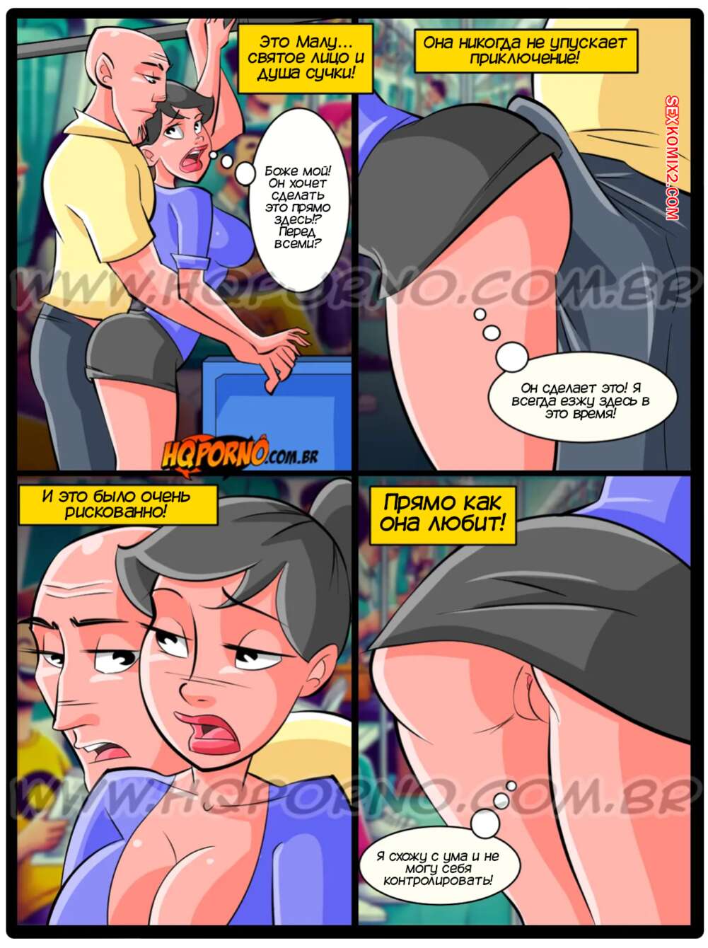 Порно комикс Запретные дела. Часть 1. So Proibidos. HQPorno Горячая брюнетка ехала в переполненном вагоне метро, где привлекла внимание лысого парня. Он просто достал свой член и выебал девушку во все дырочки, заполнив ее попку спермой.