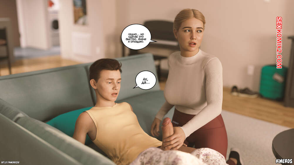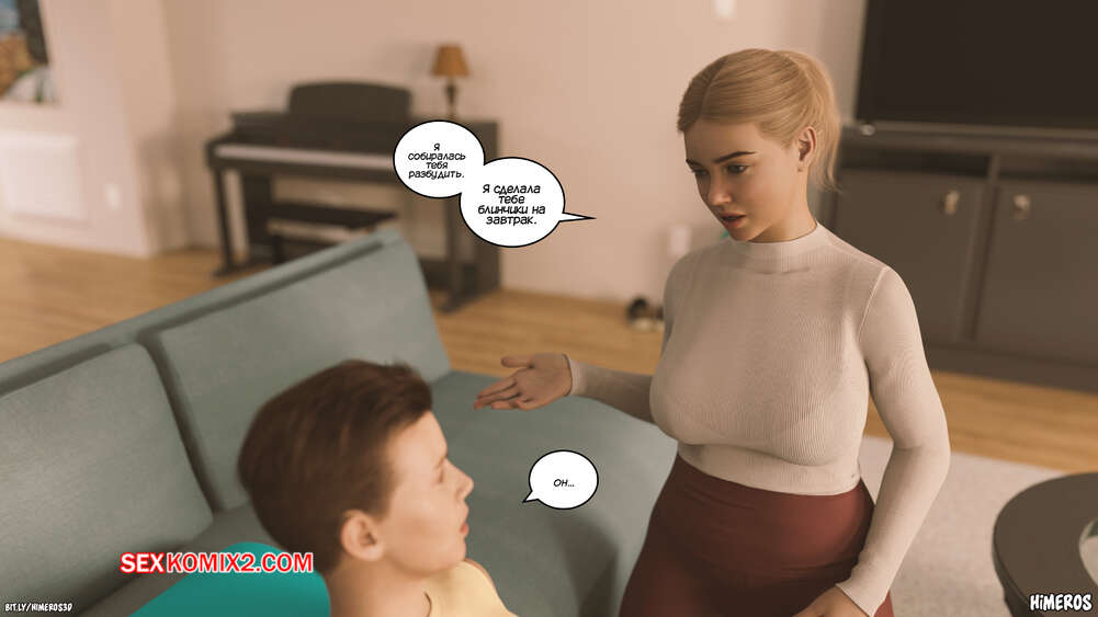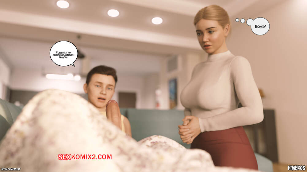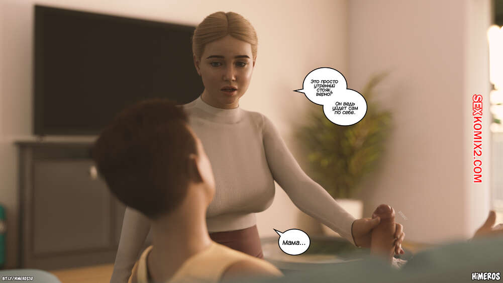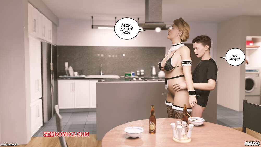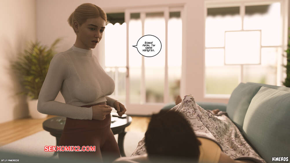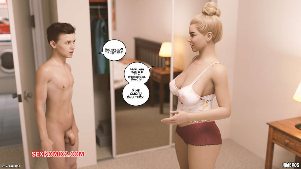 Порно комикс Вечное лето. Часть 5. Eternal Summer. Himeros3D Леон невероятно возбужден, видя свою горячую мамочку в соблазнительном наряде. Он начинает шлепать ее сочную задницу, от чего блондинка милфа получает удовольствие, но пытается скрыть это.