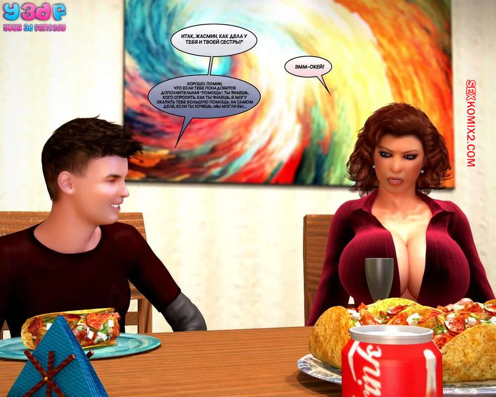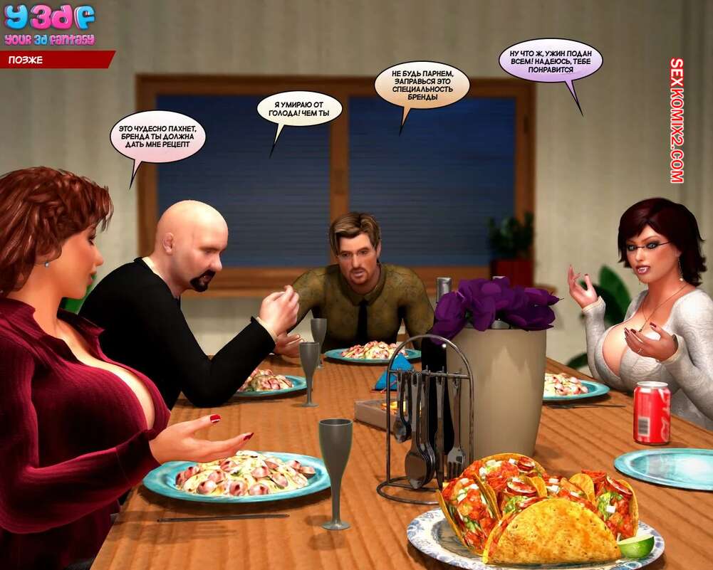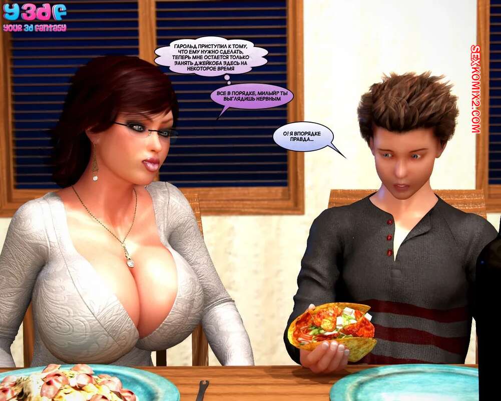 Порно комикс Восстание. The Uprising. Y3DF. Во время ужина горячие милфы возбудились и отправились со своими сыновьями в ванну, чтобы трахнуться. Пока одна парочка пряталсь, другая пара занималась страстной еблей.