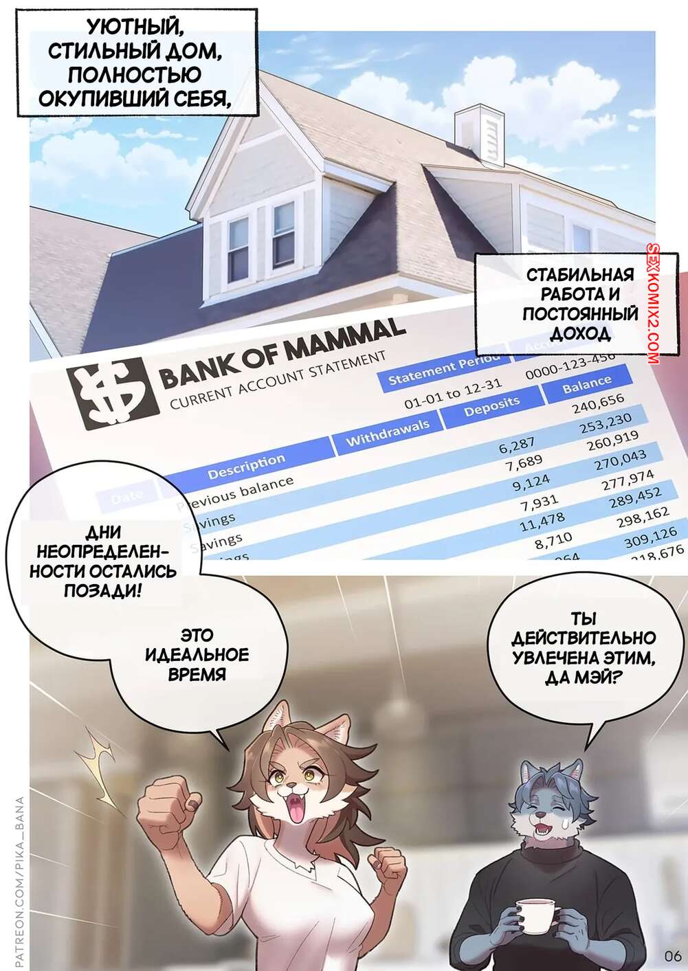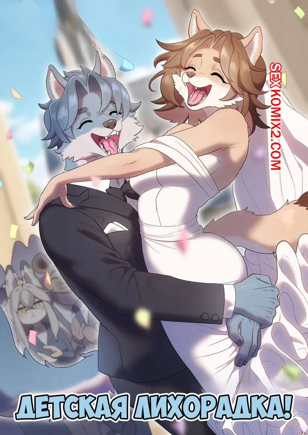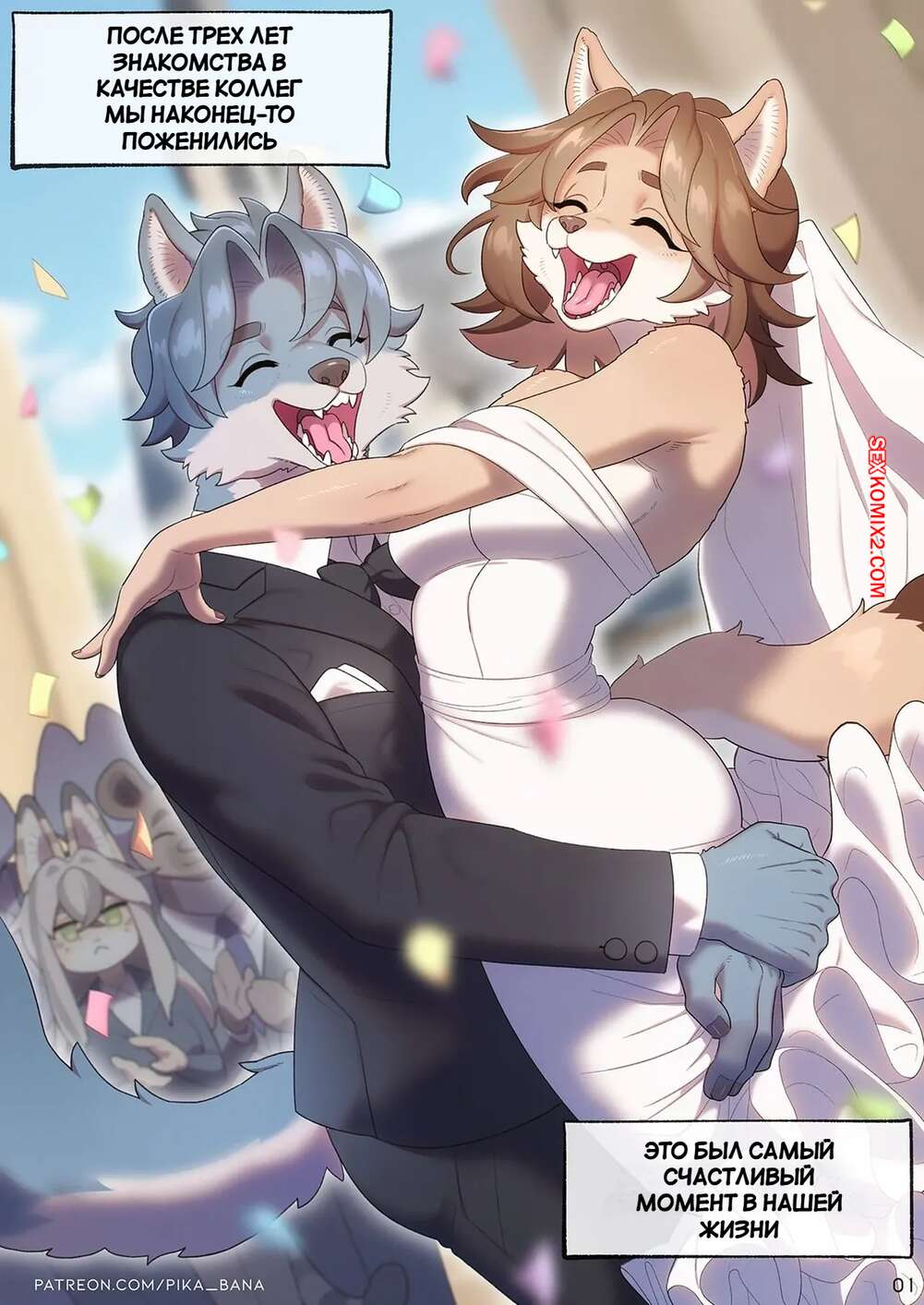 Порно комикс Детская лихорадка. Baby Fever, ON. Strong Bana. Парень и девушка фурри сыграли свадьбу и теперь очень хотят завести ребенка. Они очень любят трахаться и красота с огромным удовольствием скачет на члене мужа, после чего он кончает в нее.