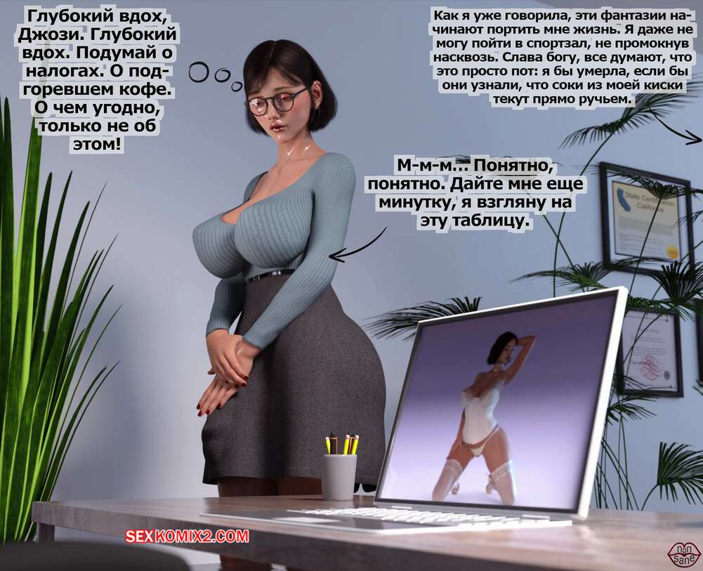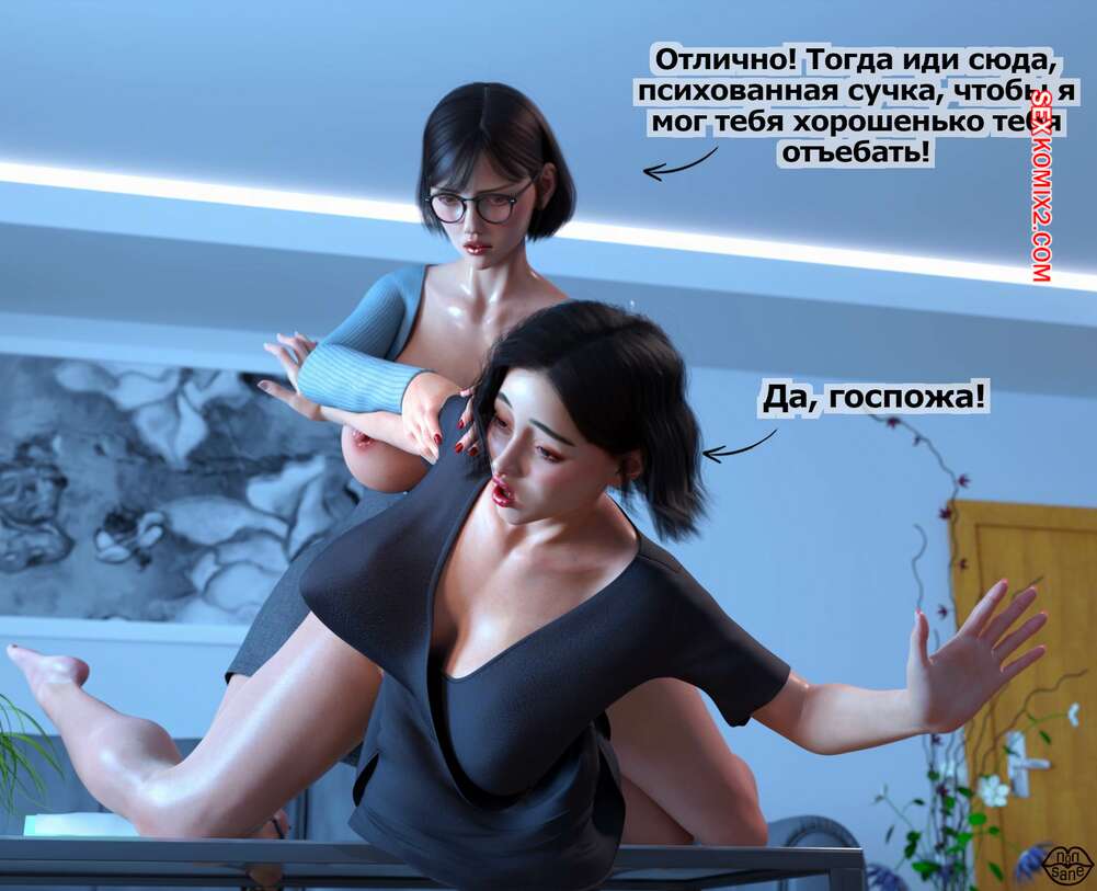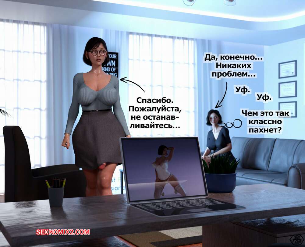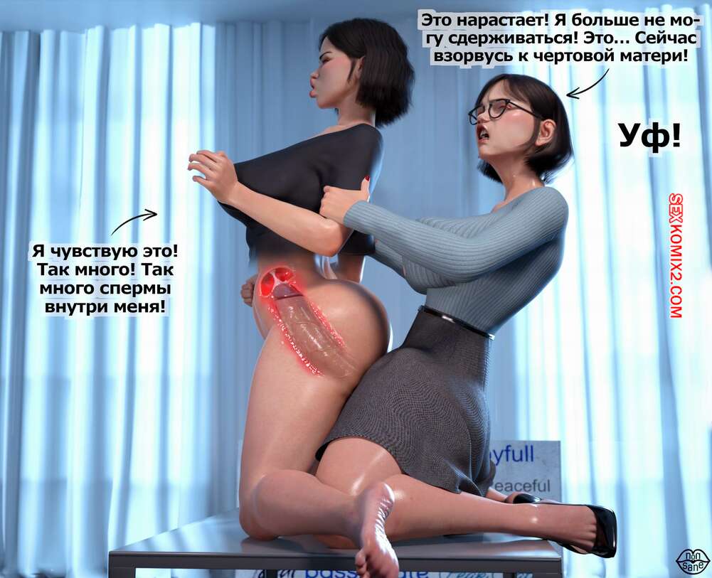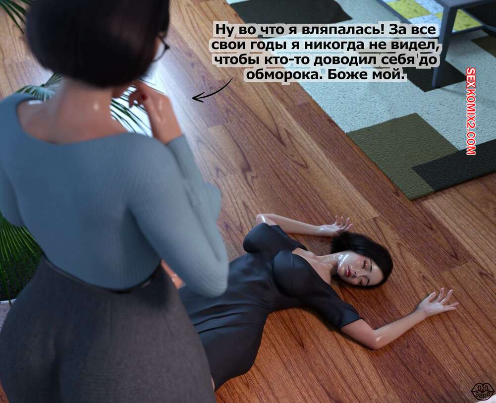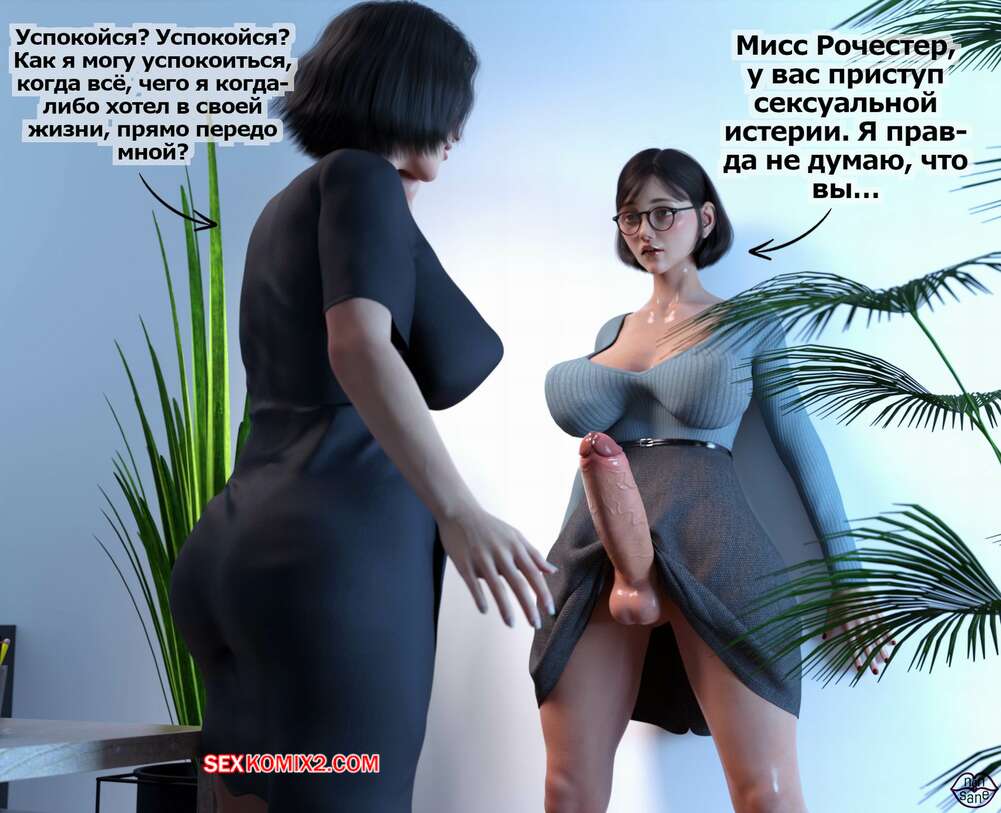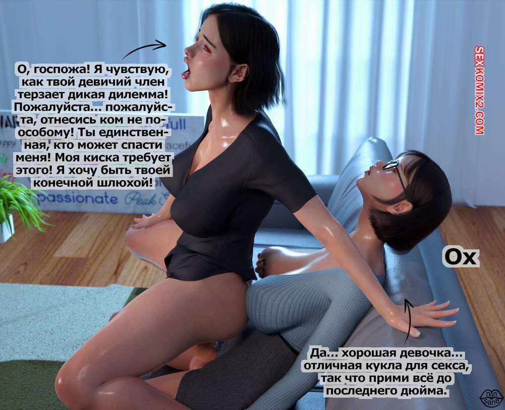 Порно комикс Adicktion Therapy. Часть 2. UnModel. Nonsane Горячая брюнетка была поражена огромным членом милфы начальницы. Девушка встала на колени и стала сосать большой хуй зрелой красотки, после чего дала ей себя выебать и кончить в нее.