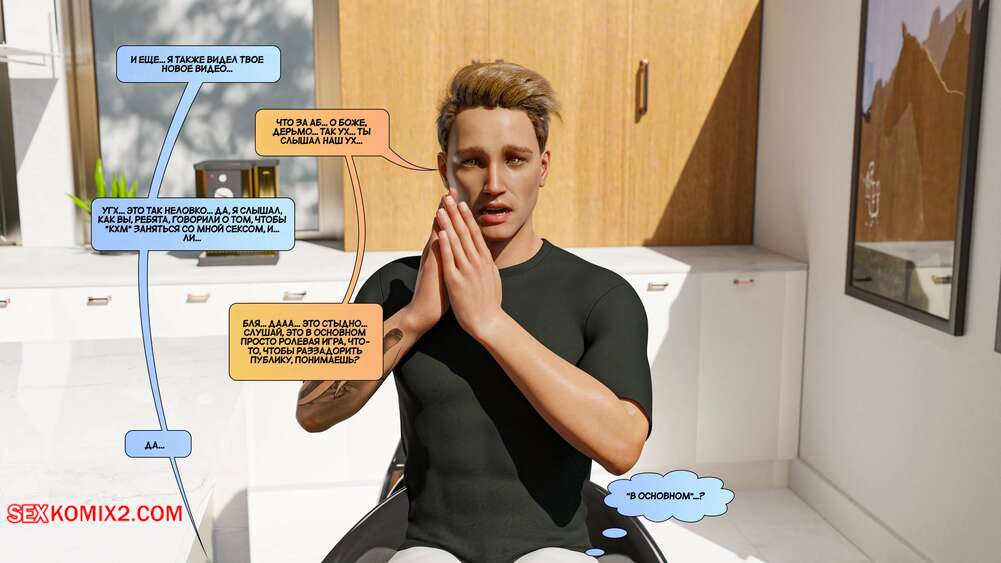 Порно комикс Новые соседи. Часть 9. The New Neighbors. Antalore42 Парнишка продолжает смотреть порно своих соседей. Горячая милфа сперва сосет хуй своего мужа, после чего седлает его член и дает ему себя хорошенько выебать.