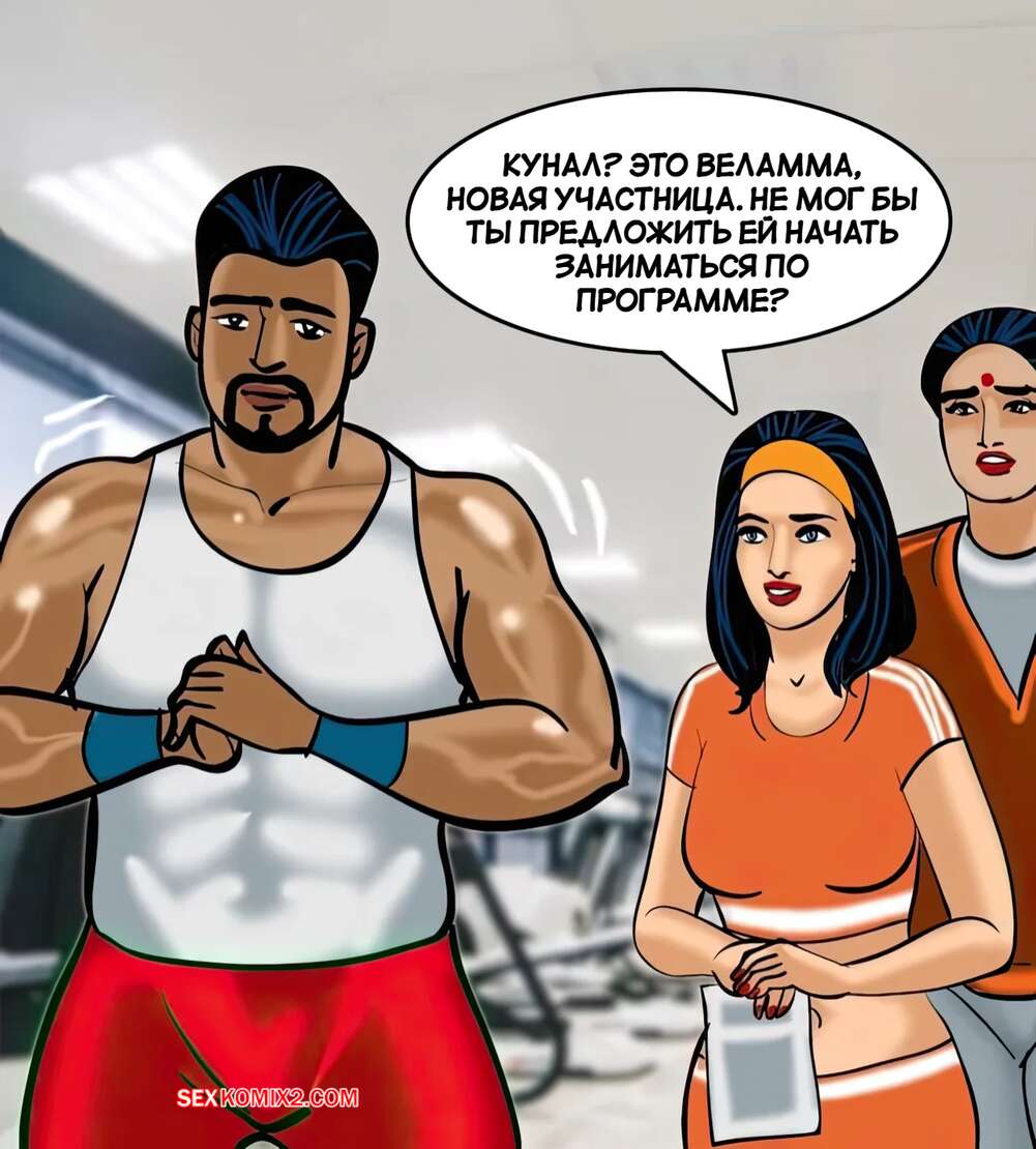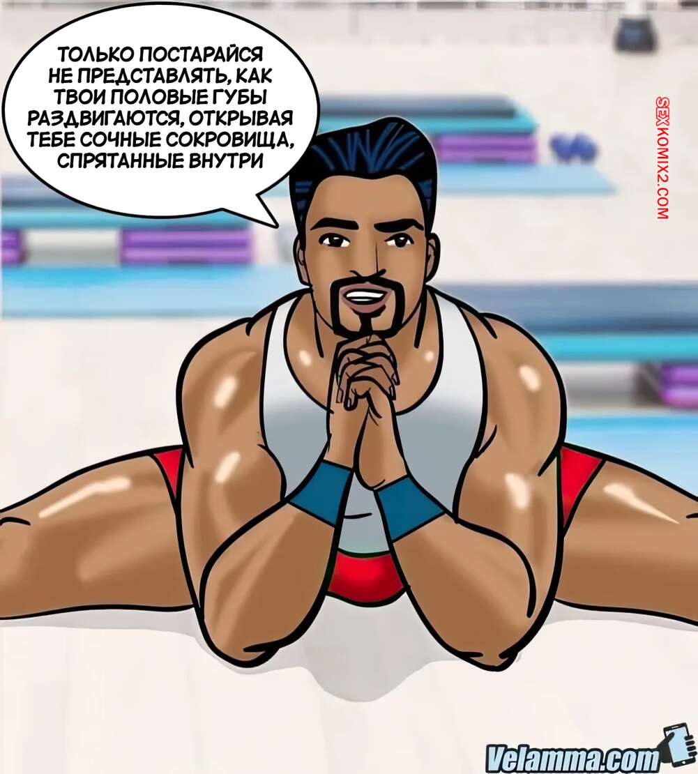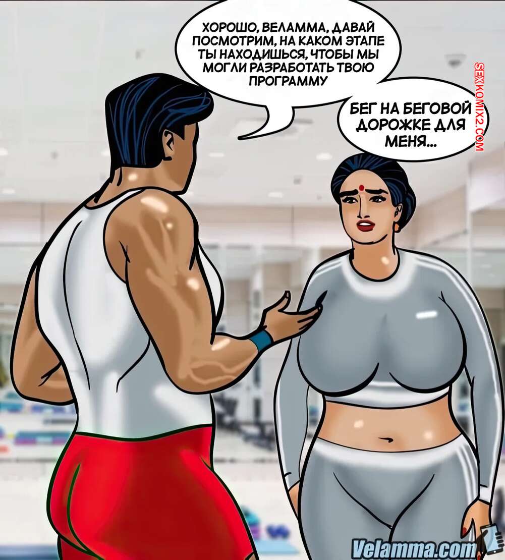 Порно комикс Веламма. Часть 75. Velamma. Velamma Веламма занималась в тренажерном зале и не смогла устоять перед членом тренера. Красотка разделась и отсосала хуй парня, после чего дала ему себя выебать в разных позах.