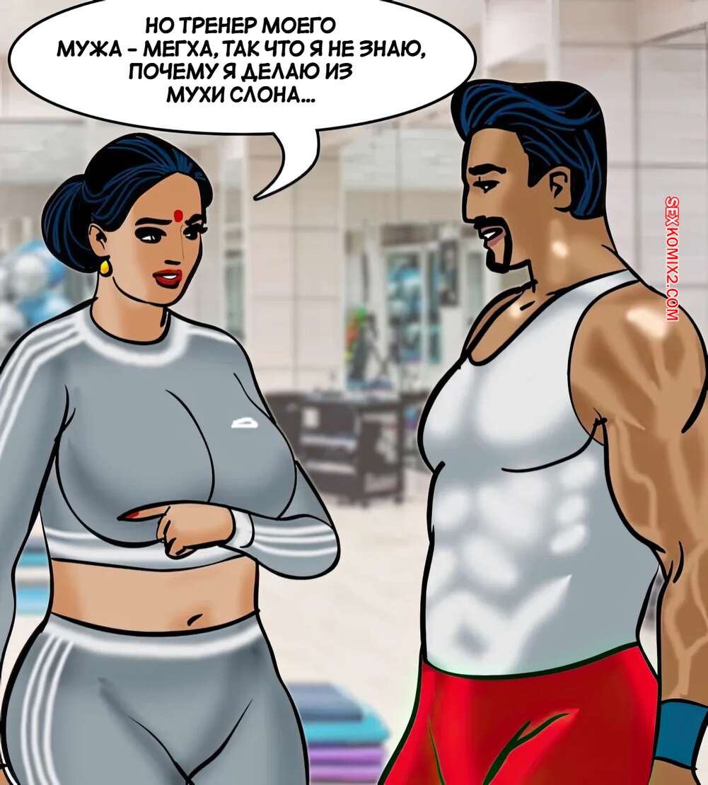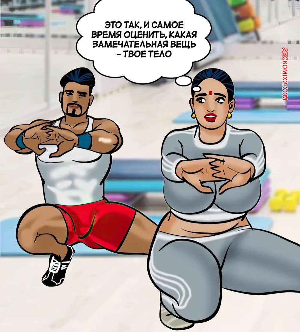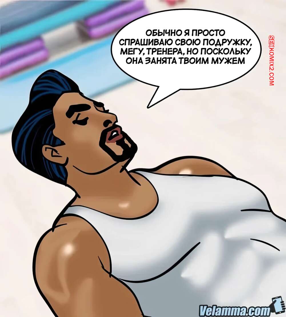 Порно комикс Веламма. Часть 75. Velamma. Velamma Веламма занималась в тренажерном зале и не смогла устоять перед членом тренера. Красотка разделась и отсосала хуй парня, после чего дала ему себя выебать в разных позах.