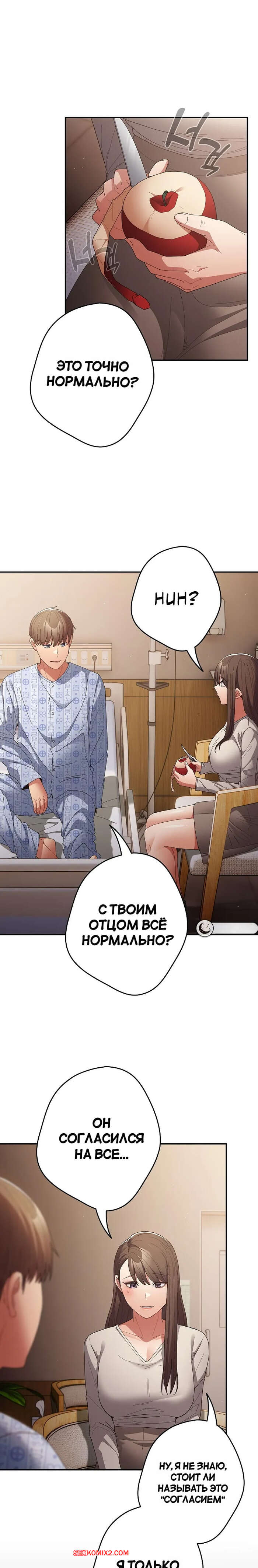 Порно комикс Это делается не так. Часть 103. Thats not what I do Парнишка попал в больницу и горячая брюнетка осталась ухаживать за ними. Ночью красотка разделась и стала сосать хуй парня, но внезапно дверь в палату открылась.