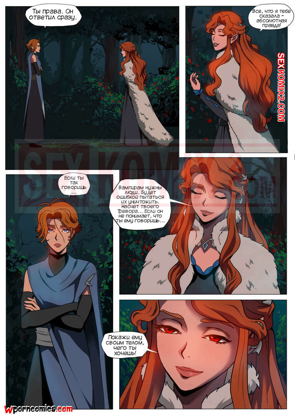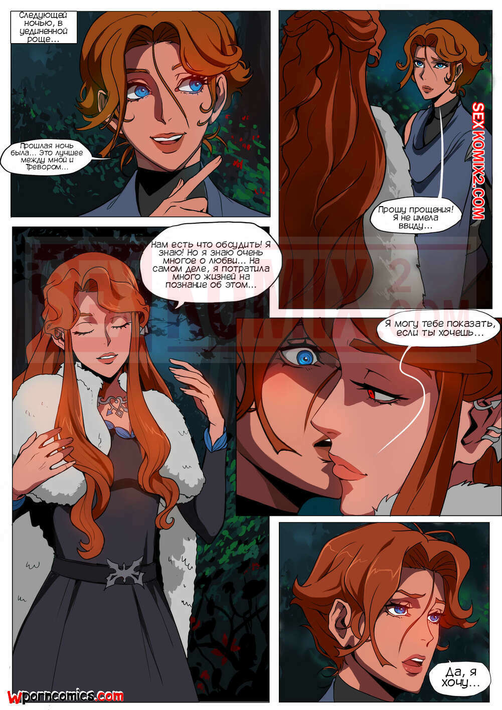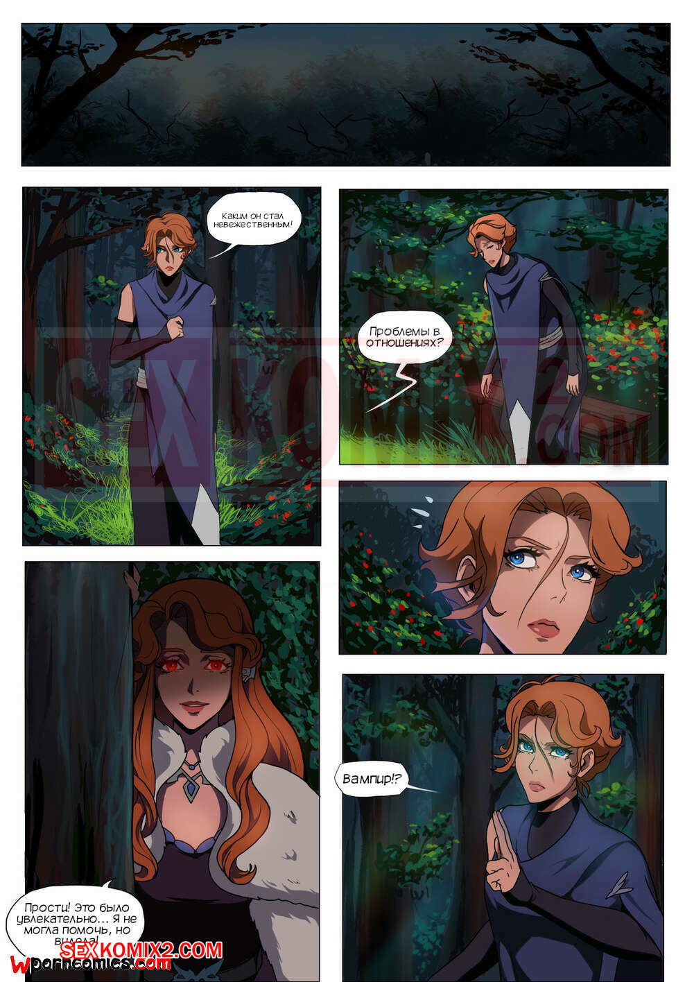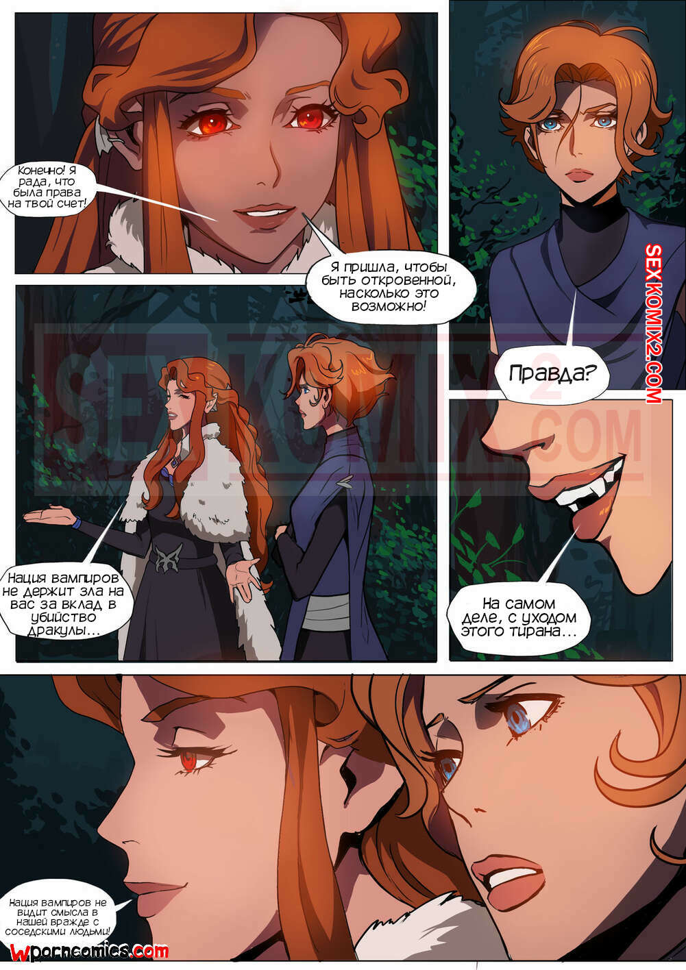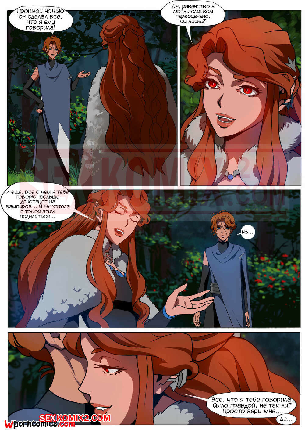 Порно комикс CastleVania Твой вампир. VampYous. Amaretto. Двое охотников на вампиров стакнулись с очень сильной вампиршей. Она смогла их загипнотизировать и совратить. После этого они уже не могли сражаться.