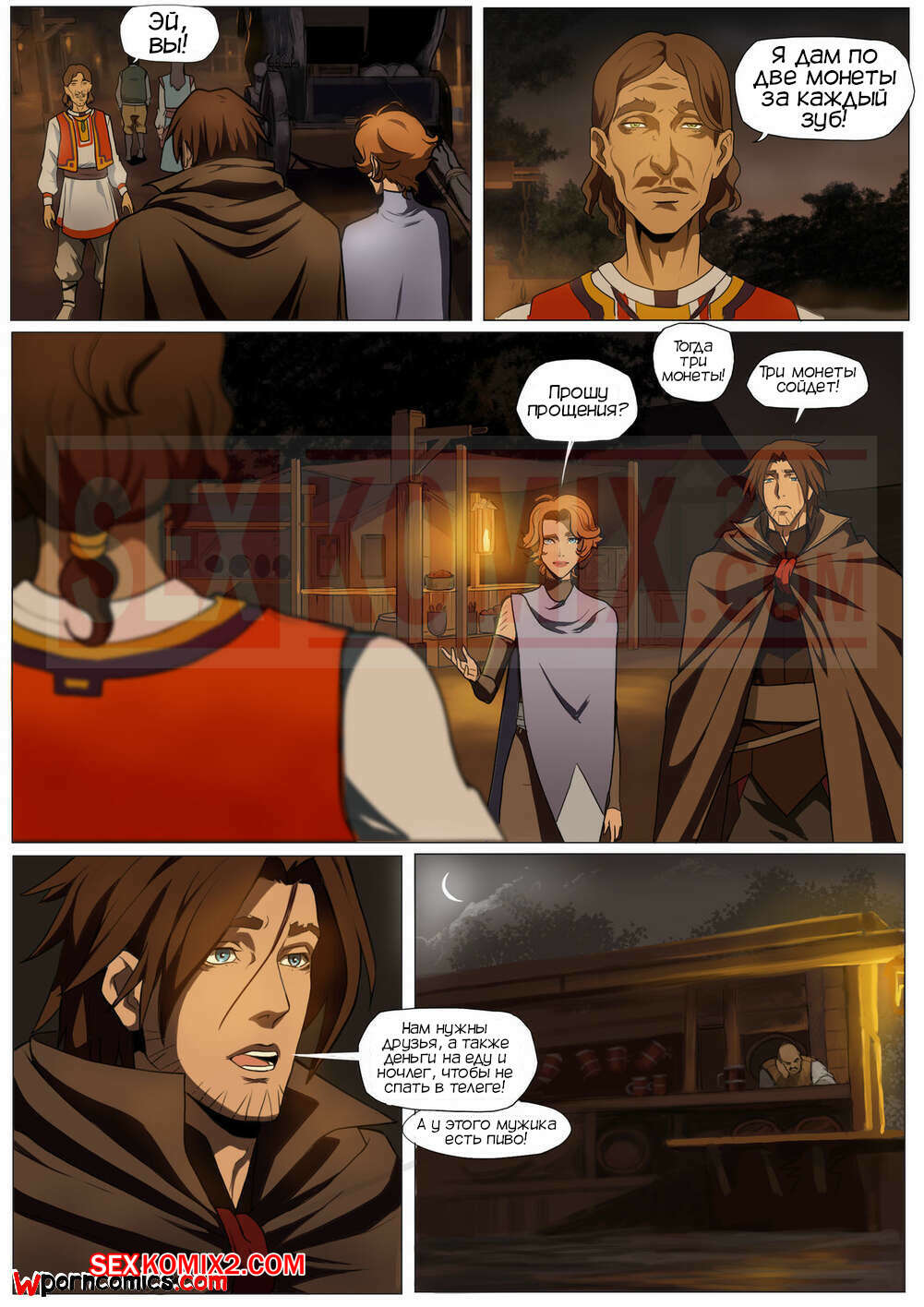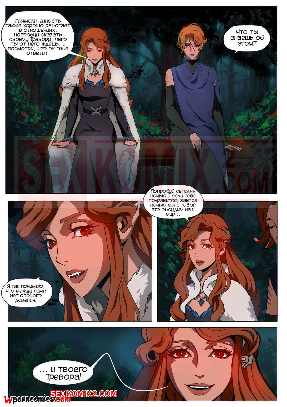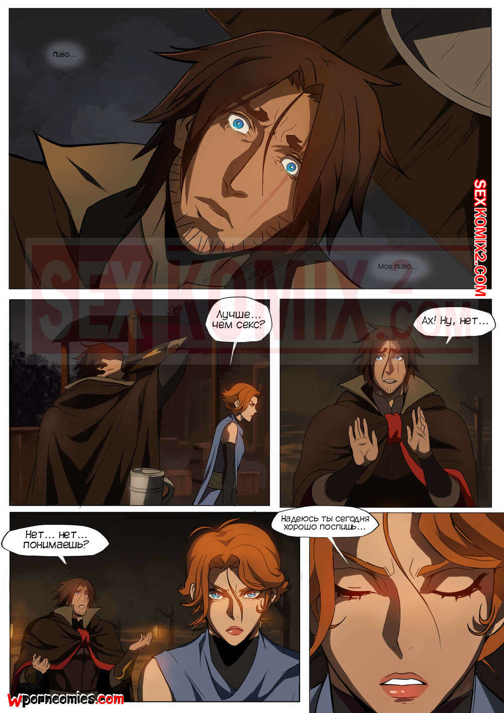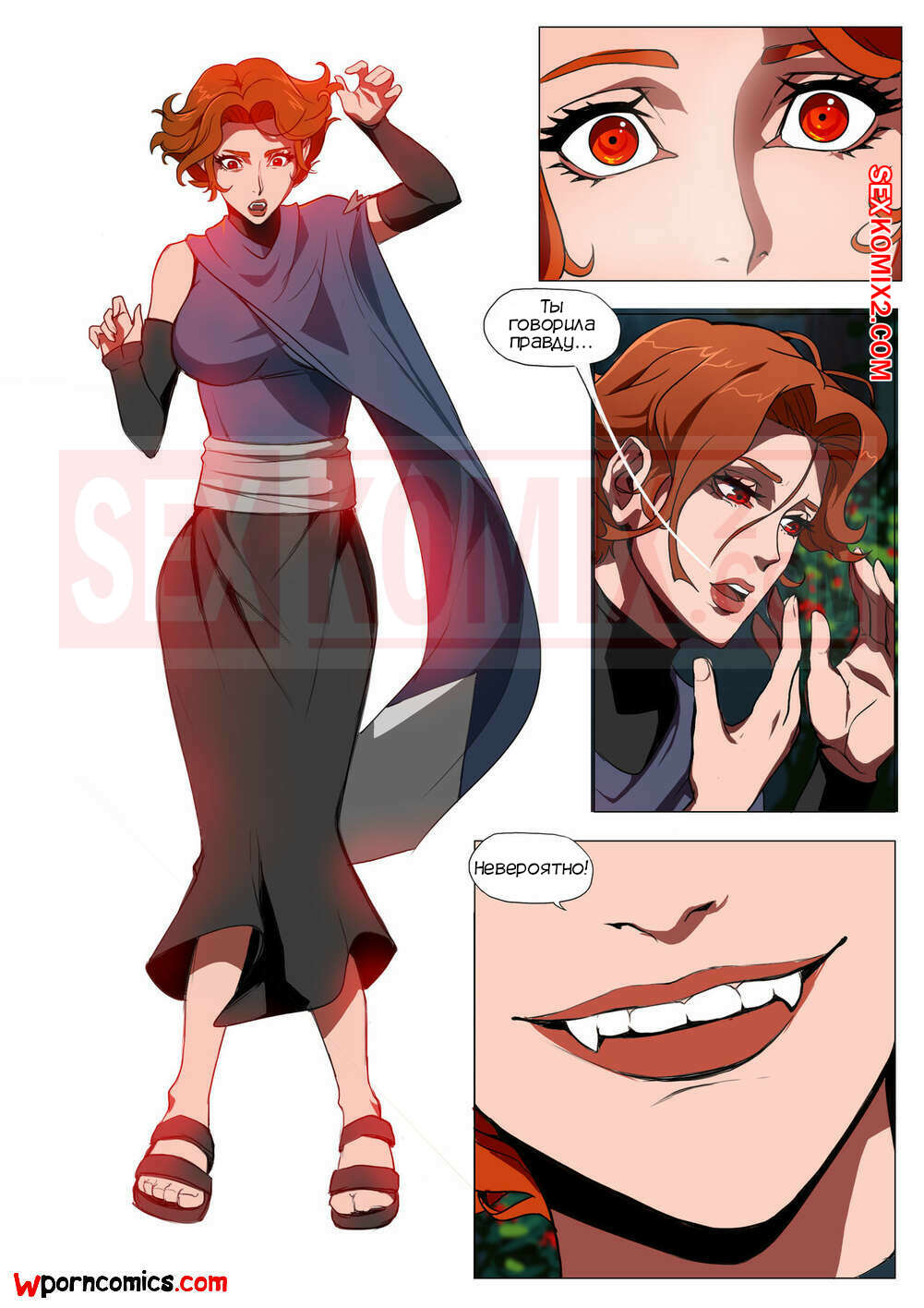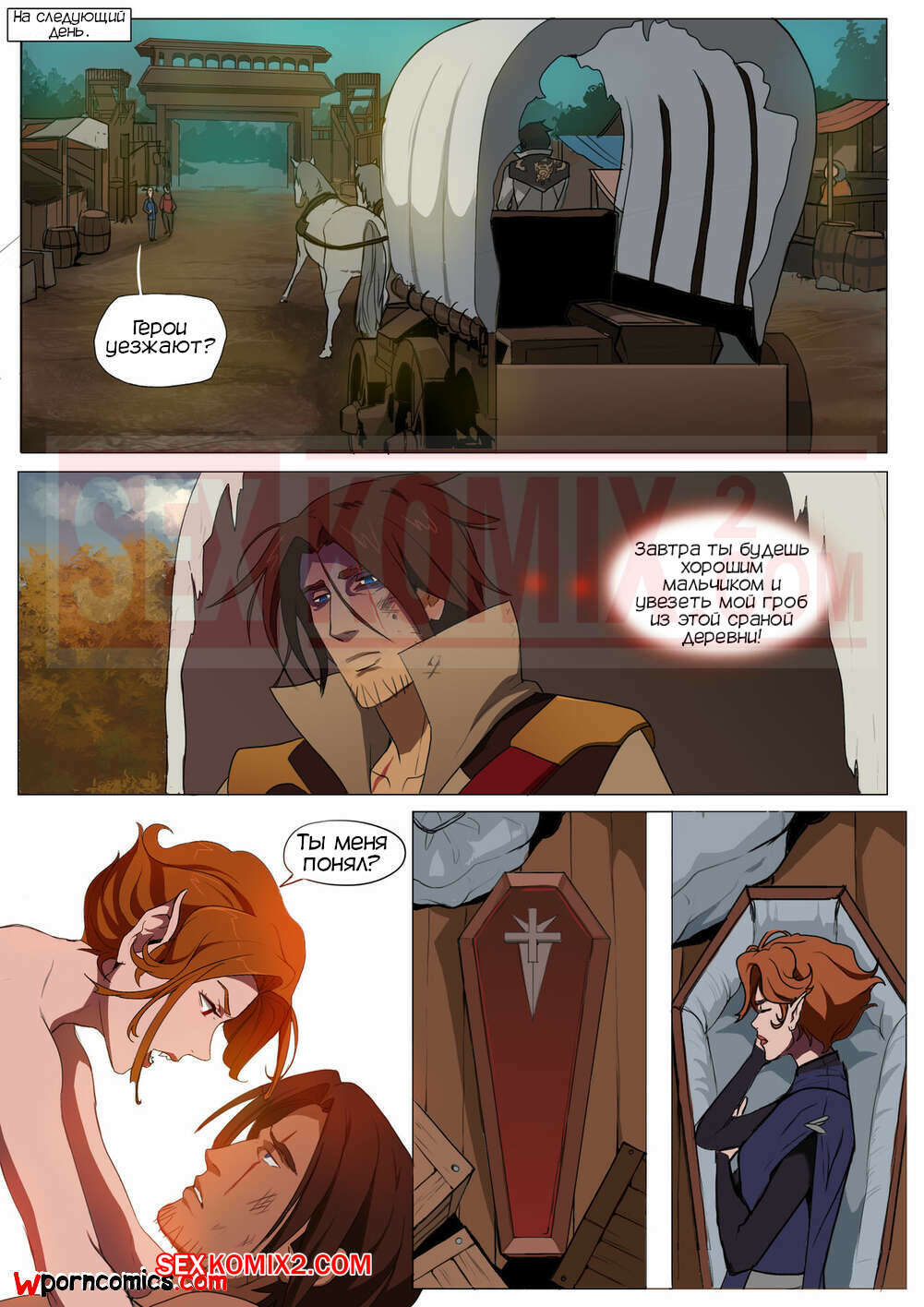 Порно комикс CastleVania Твой вампир. VampYous. Amaretto. Двое охотников на вампиров стакнулись с очень сильной вампиршей. Она смогла их загипнотизировать и совратить. После этого они уже не могли сражаться.