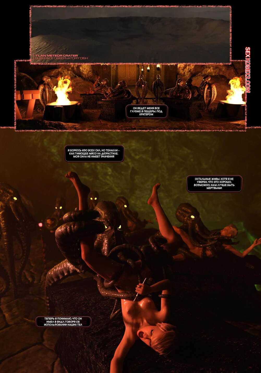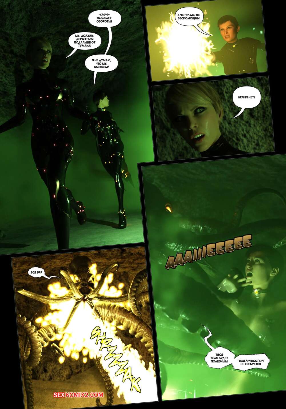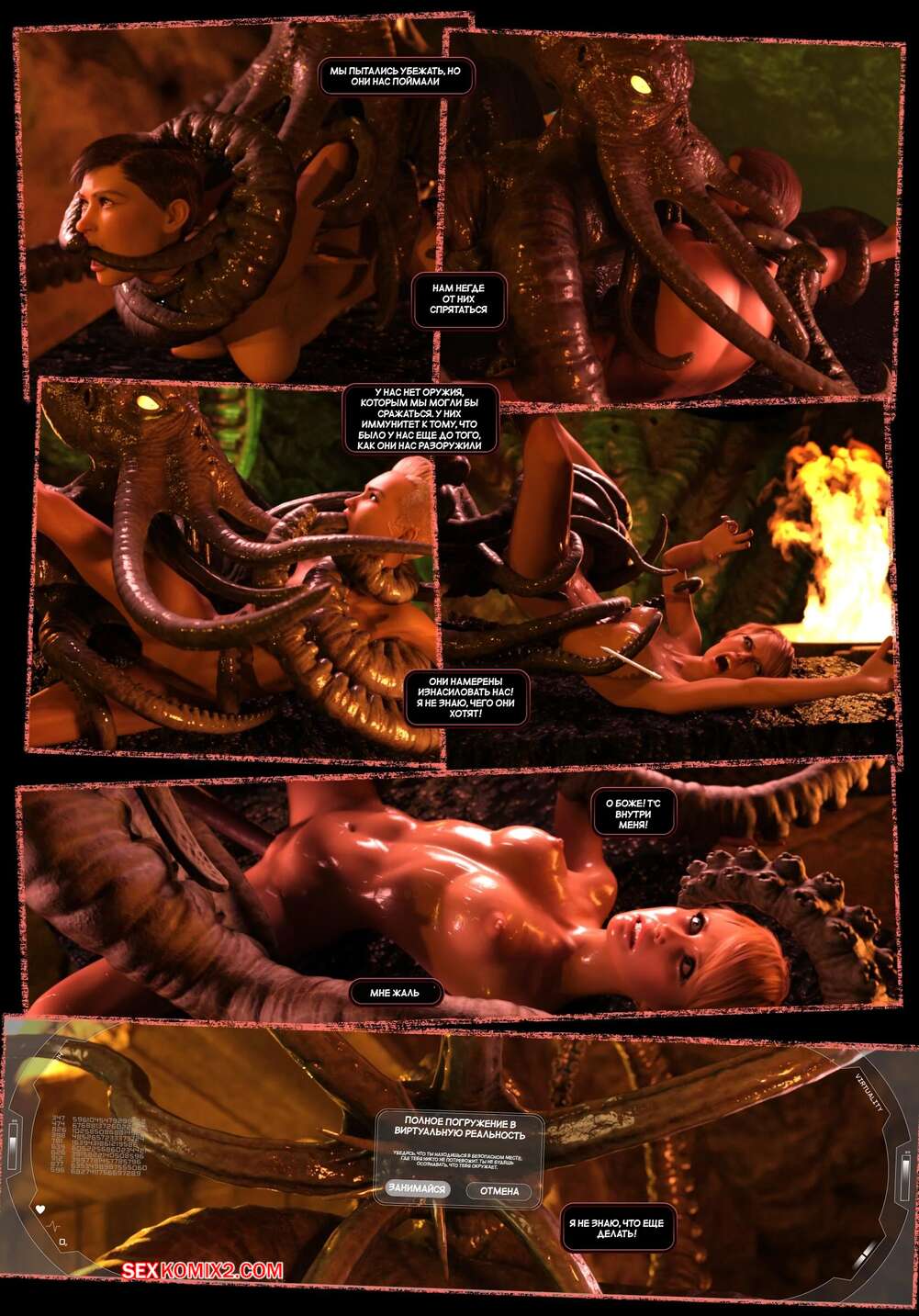 Порно комикс Пираты Угольного Мешка. Часть 31. Pirates of the Coal Sack. DangerousLines Горячие красотки были свхвачены инопланетными существами. Они сорвали одежду с девушек, после чего стали трахать их во все дырочки своими щупальцами, доставляя красоткам удовольствие.