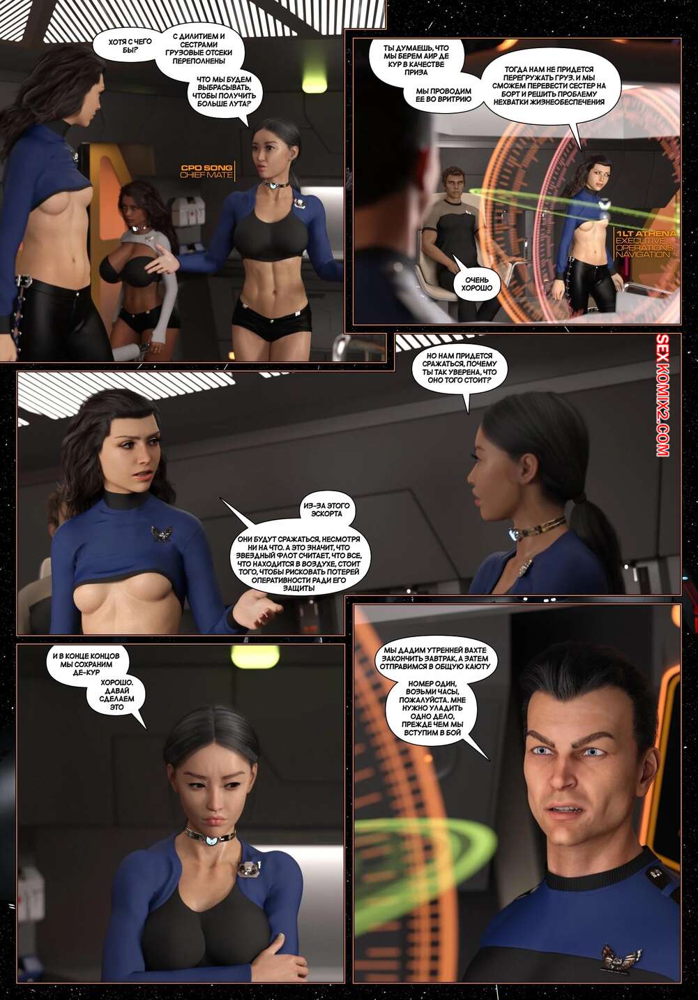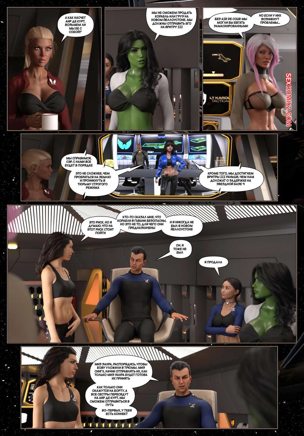 Порно комикс Пираты Угольного Мешка. Часть 32. Pirates of the Coal Sack. DangerousLines Горячие красотки разделись перед своим дружком и возбудили его шикарными телами. Красотки отсосали большой хуй парня, после чего дали ему себя хорошенько выебать.
