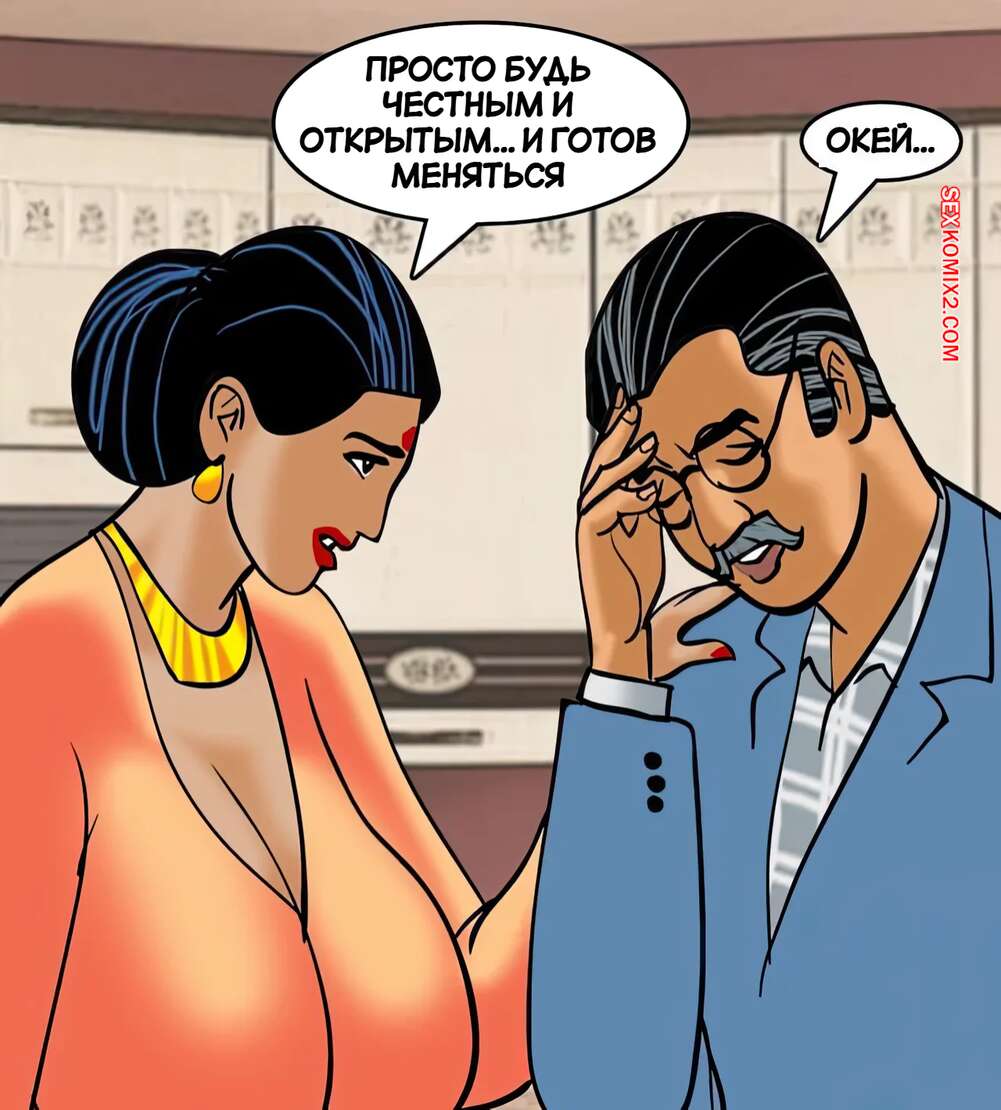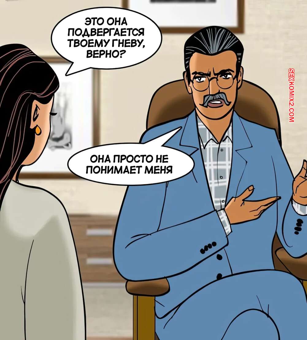 Порно комикс Веламма. Часть 84. Velamma. Velamma Веламма отправилась на прием к психологу, чтобы обсудить поведение своего мужа. Выслушав девушку, парень достал свой член и дал красотке его отсосать, после чего выебал ее во все дырочки.