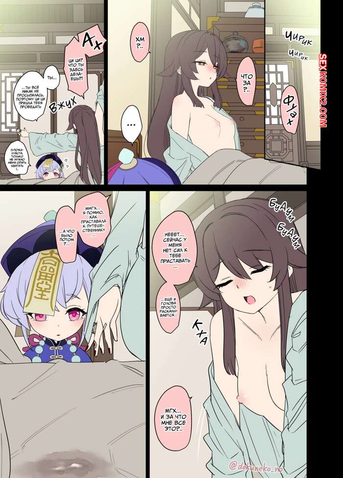 Порно комикс Genshin Impact. Грязные дела с Ху Тао. Dokuneko Noil Парень набухал горячую красотку Ху Тао, желая насладиться ее телом. Он раздел красотку и вставил в нее свой член, после чего хорошенько выебал ее пизденку.