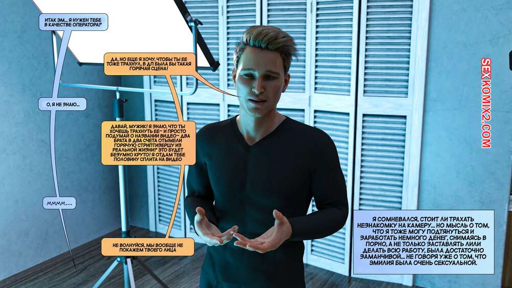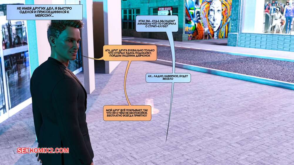 Порно комикс Новые соседи. Часть 30. The New Neighbors. Antalore42 Мейсон предложил Адама повеселиться и позвал его в стриптиз клуб. Там они встретили горячую красотку, которая устроила танец для парней, после чего они напару ее выебали.