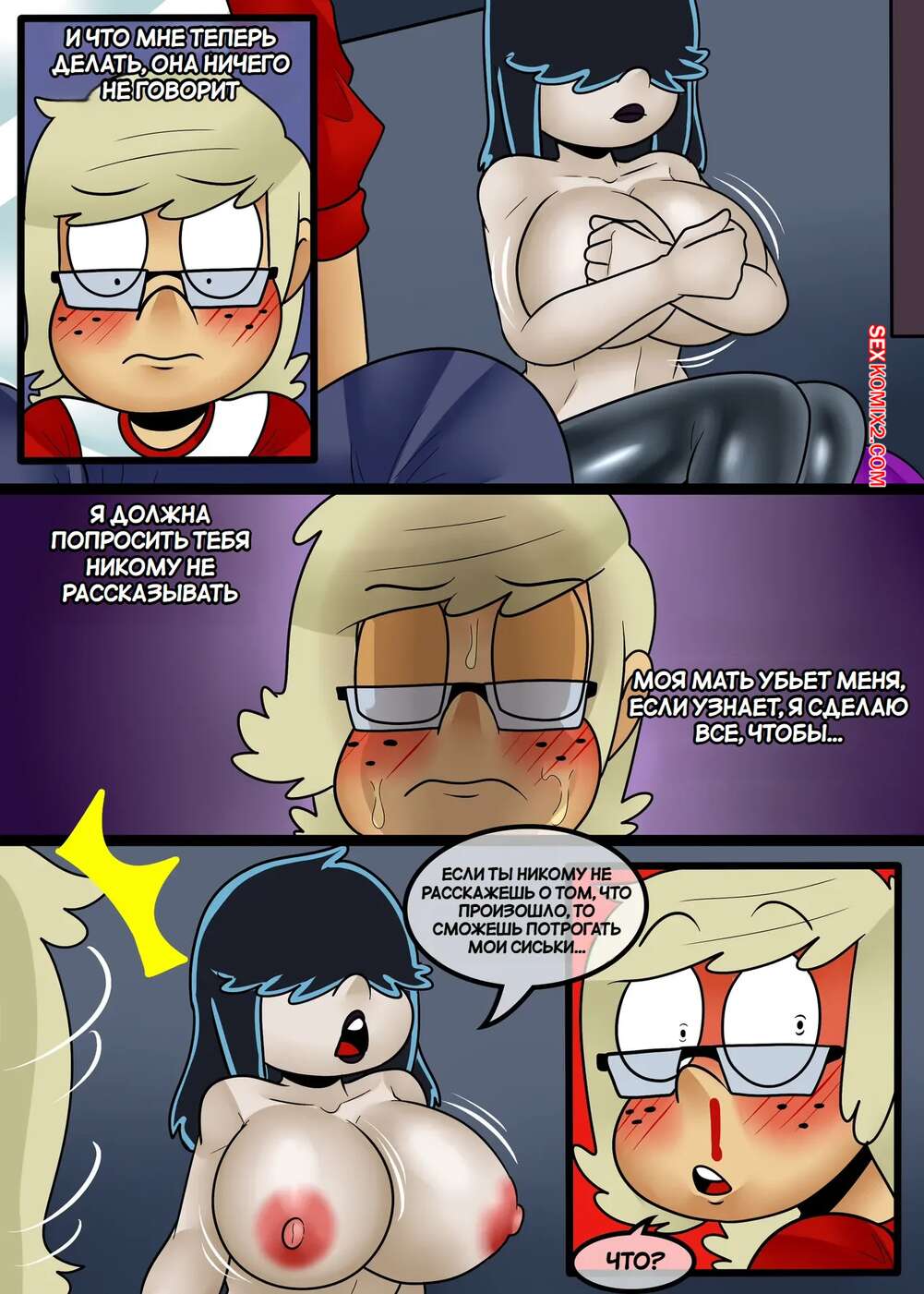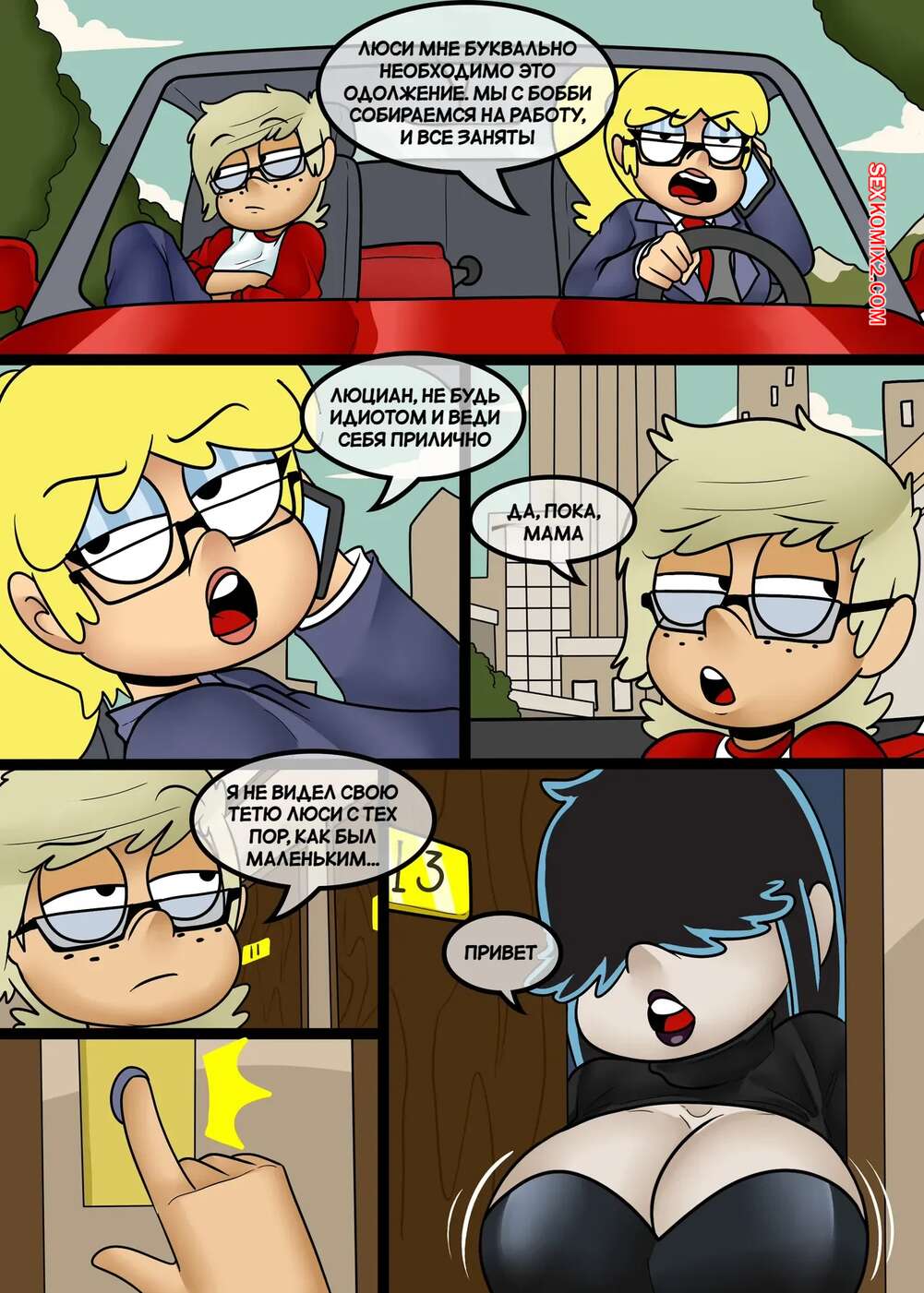 Порно комикс Шумный дом. Семейные тайны. Secretos de familia. ZaicoMaster14. Горячая брюнетка Люси приютила на время у себя своего племянника и решила воспользоваться моментом, чтобы его соблазнить. Красотка оседлала хуй парня и дала ему себя хорошенько выебать, доставив парню удовольствие.