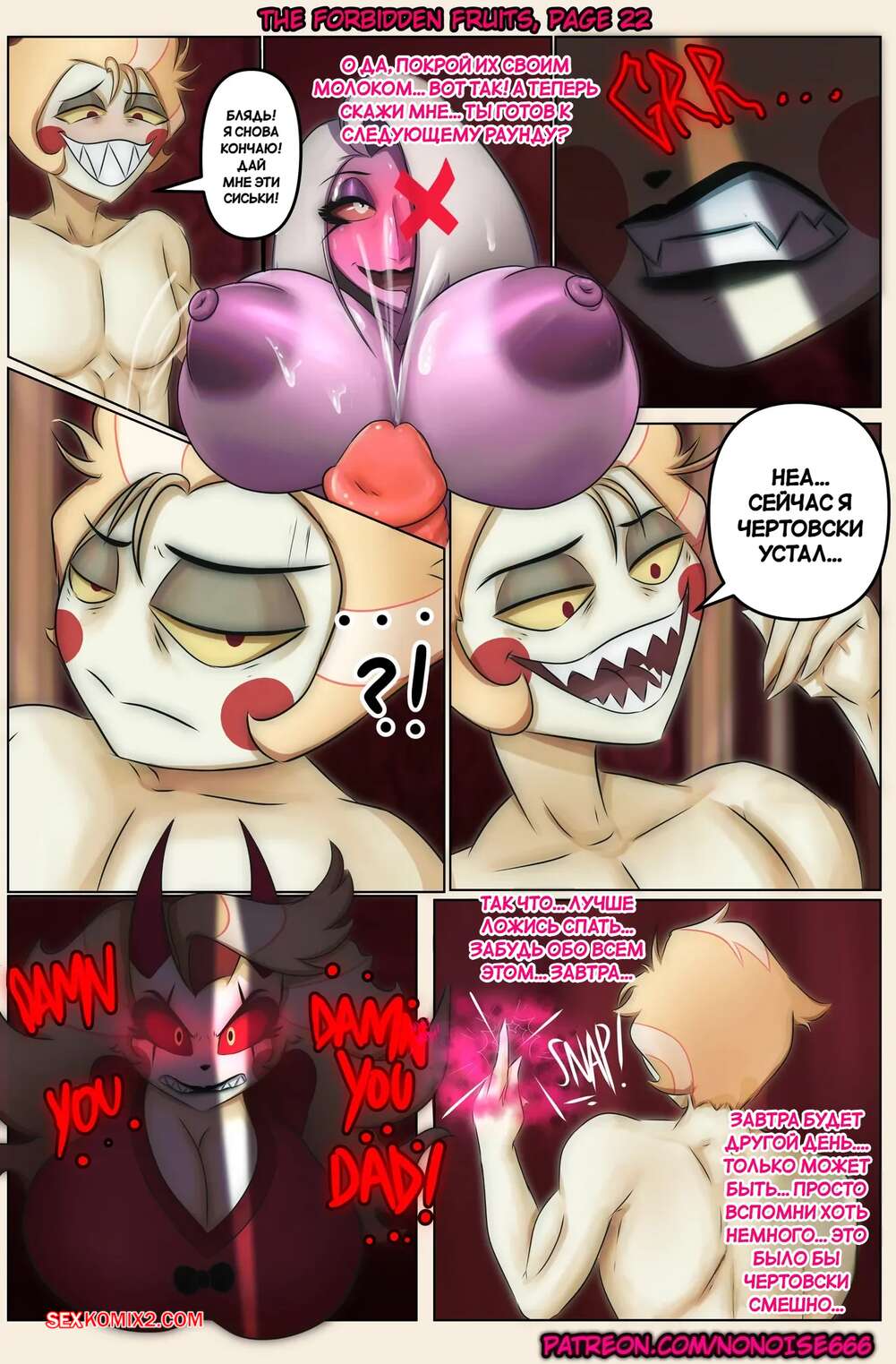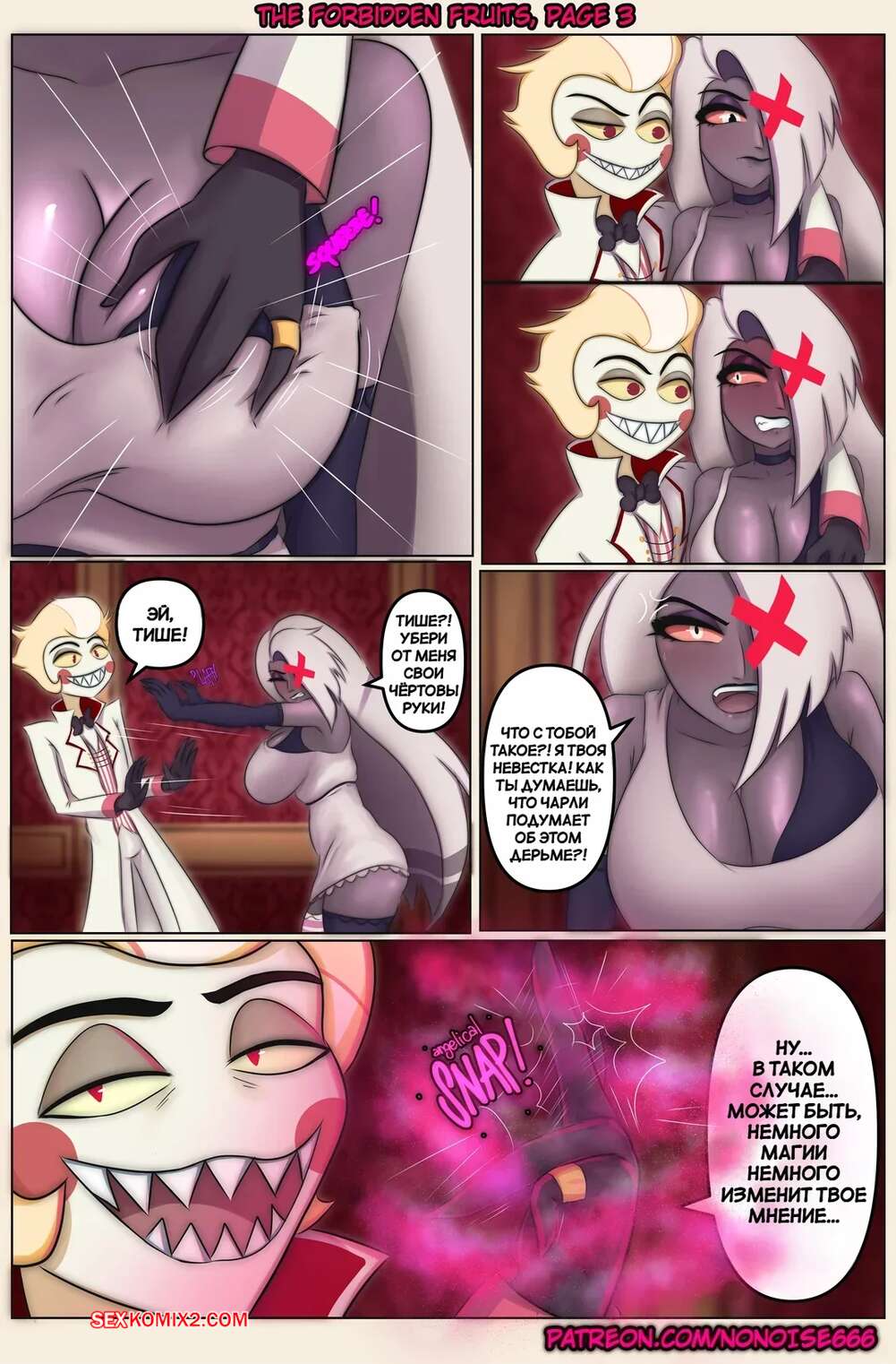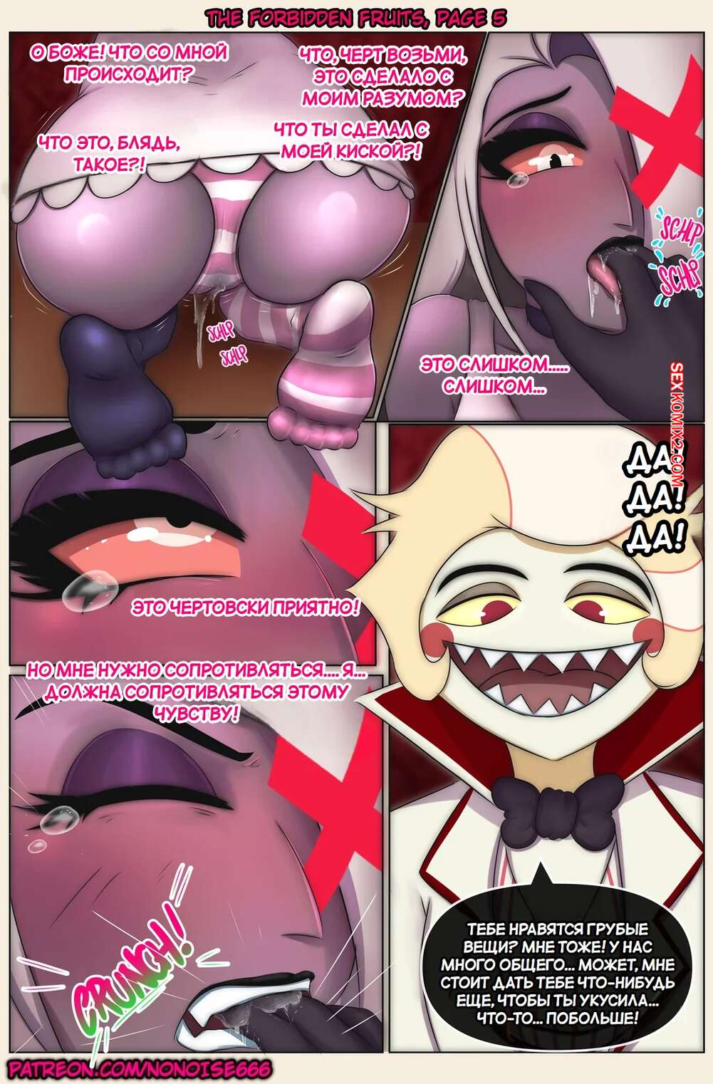 Порно комикс Отель Хазбин. Запретные плоды. The Forbidden Fruits. NONOISE666 Вэгги только проснулась, а ее дружок уже стал ее соблазнять, желая повеселиться. Красотка разделась и отсосала хуй парня, после чего он выебал ее пизденку и кончил в нее.