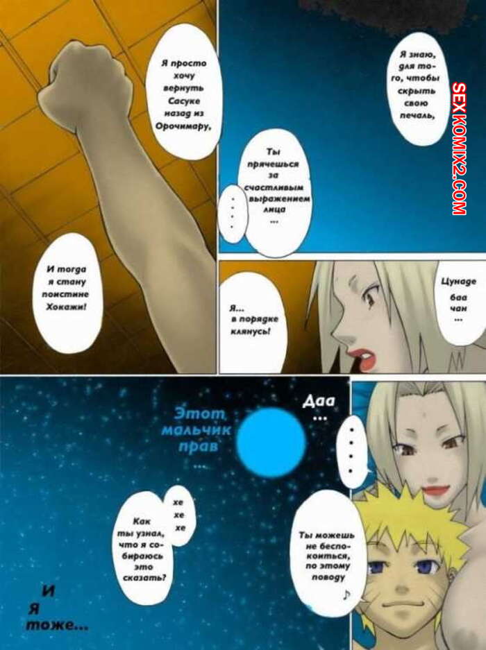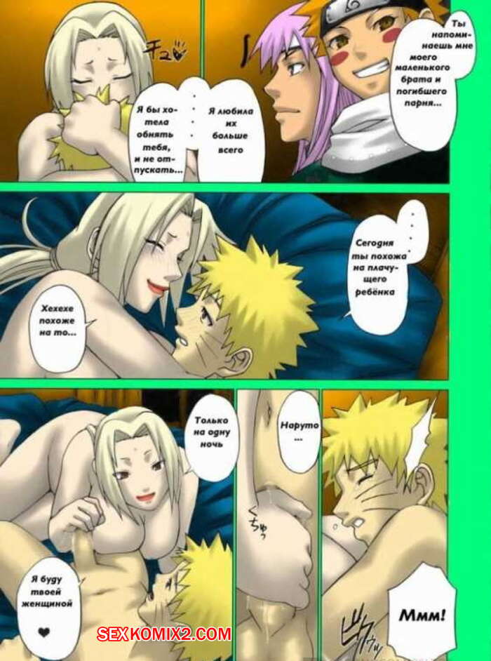 Порно комикс Наруто и Цунаде. Пара Наруто приехал к своей бабушке и та застала его ночью. Ее возбудил повзрослевший внук и тогда она решила прижать его лицом к своим большим сиськам, чтобы затем позволить парню страстно себя выебать.